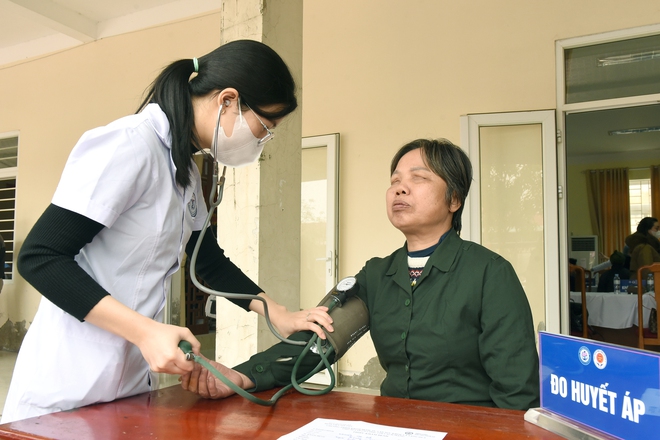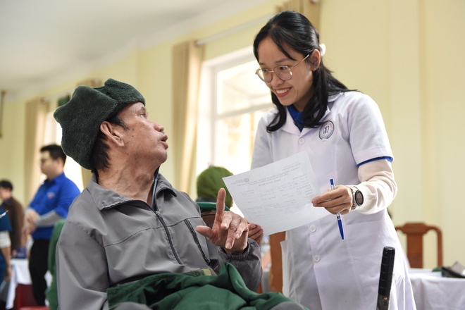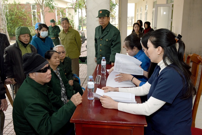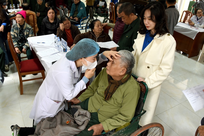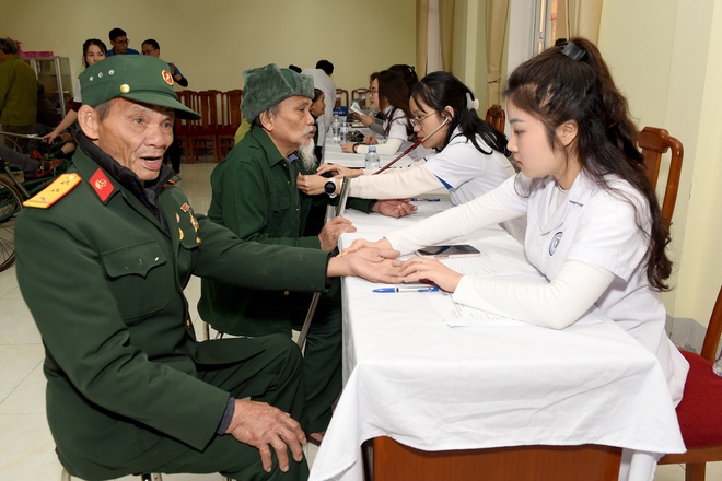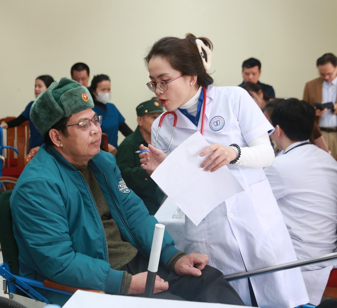 Các y bác sĩ đã trực tiếp thăm khám, tư vấn chế độ sinh hoạt, dinh dưỡng, hướng dẫn theo dõi và điều trị phù hợp cho từng thương binh. Nhiều người được sàng lọc các bệnh mạn tính như đái tháo đường, tăng huyết áp, rối loạn chuyển hóa.