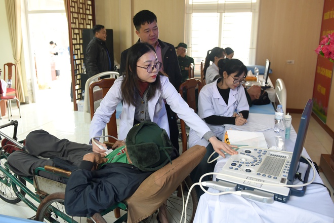 Các y bác sĩ đã trực tiếp thăm khám, tư vấn chế độ sinh hoạt, dinh dưỡng, hướng dẫn theo dõi và điều trị phù hợp cho từng thương binh.