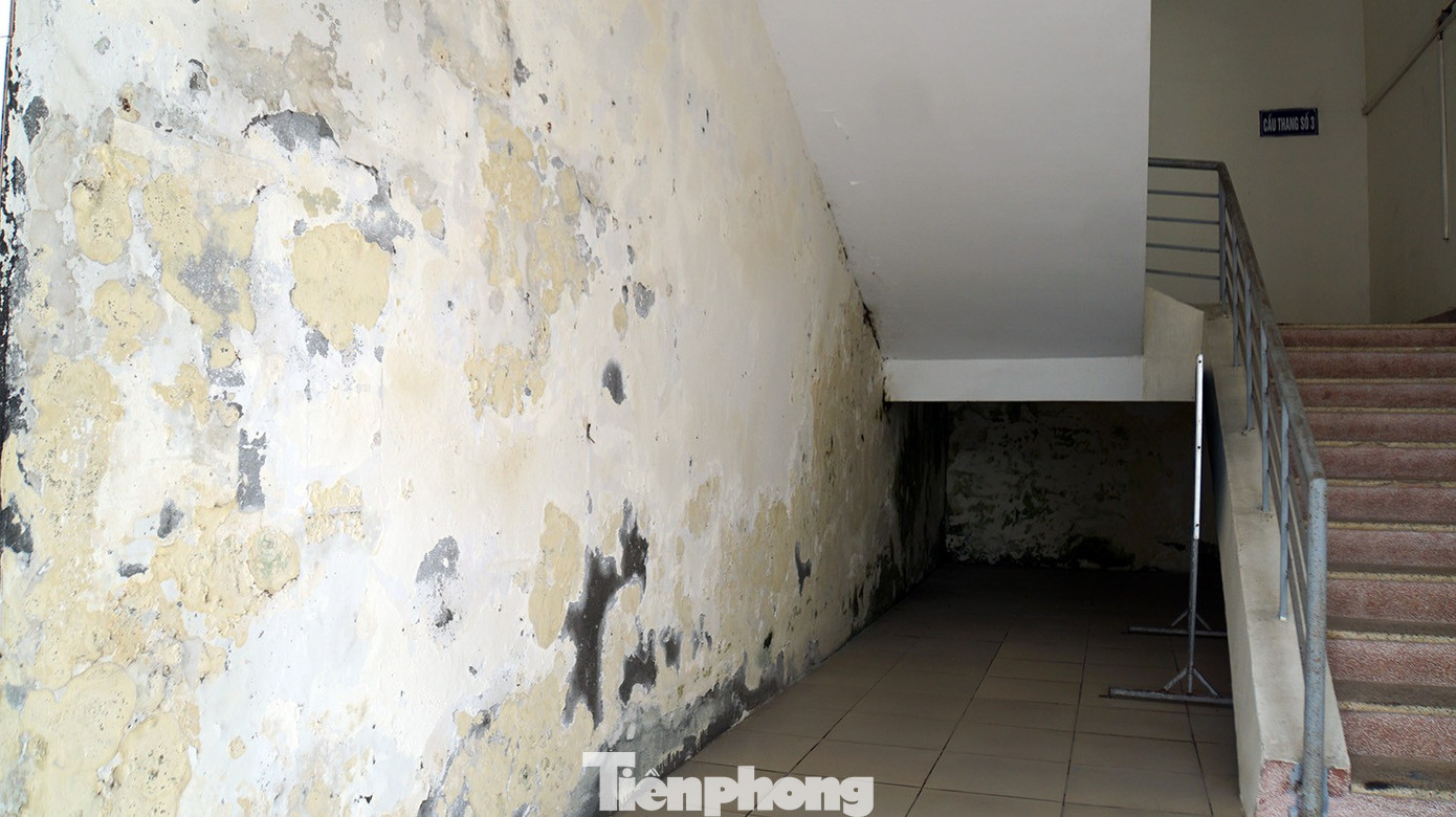 Tại tòa nhà C cao 3 tầng, nơi đặt Khoa nội 1 - Bệnh viện phổi Hải Phòng, khu vực cầu thang, tường xuất hiện các vết bong tróc, ẩm mốc nhiều năm nay. Tòa nhà này chỉ còn sử dụng tầng 1 và tầng 2 làm nơi điều trị cho bệnh nhân.
