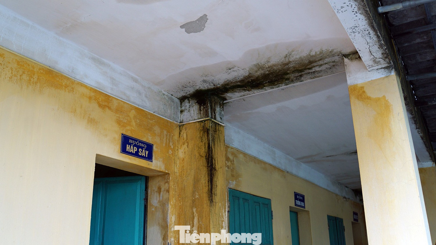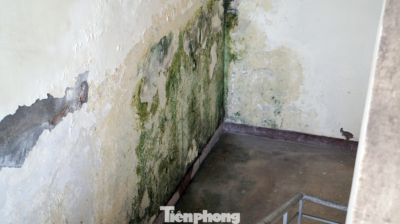 Tương tự, khu nhà kiểm soát nhiễm khuẩn, khu xử lý nước thải, nhà giải phẫu... cũng đã xuống cấp nghiêm trọng, xuất hiện các vết nứt lớn, trần nhà thấm dột, mọc rêu. Hàng ngày, bác sỹ và nhân viên vẫn làm việc trong điều kiện không đảm bảo an toàn.
