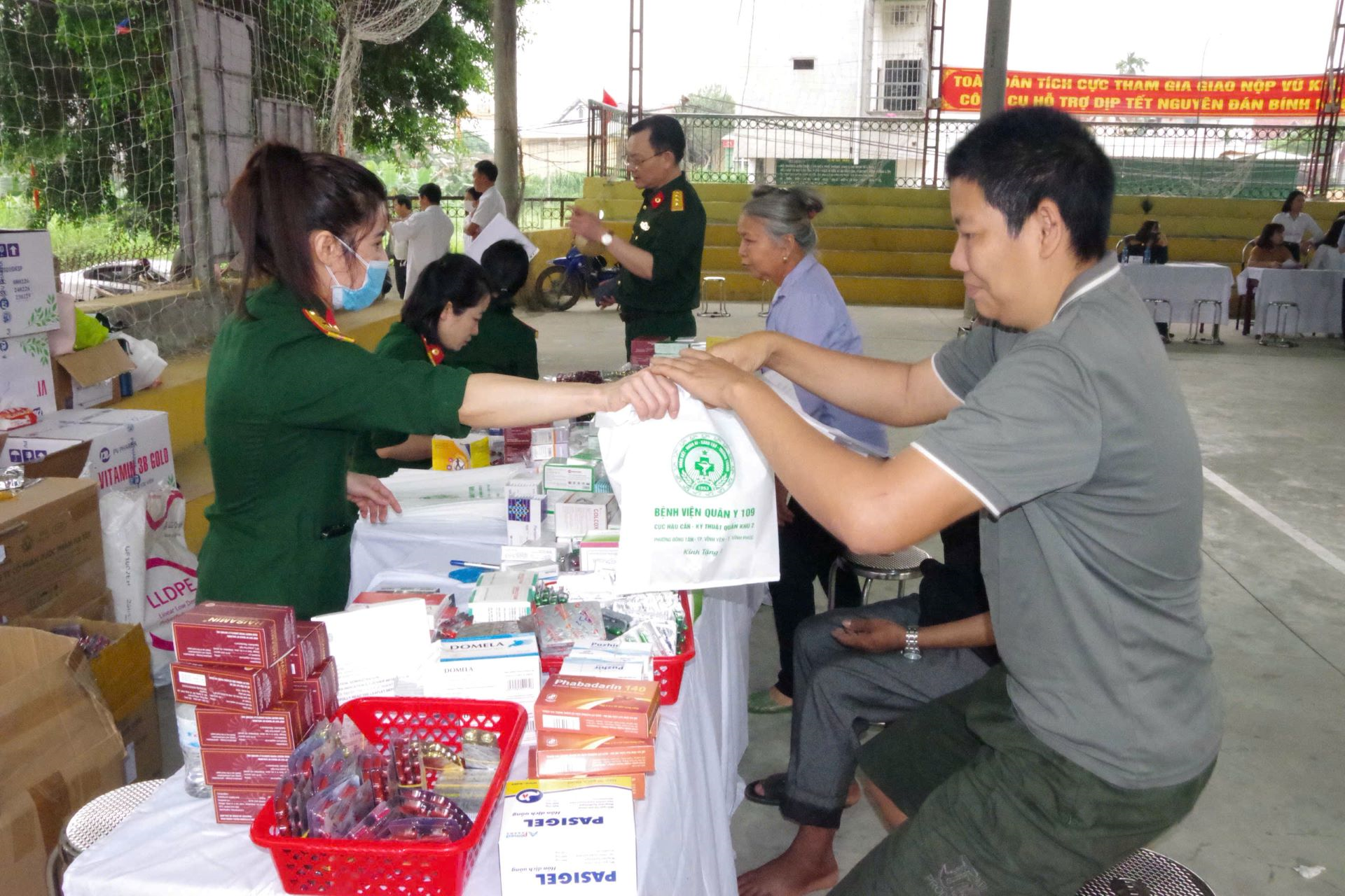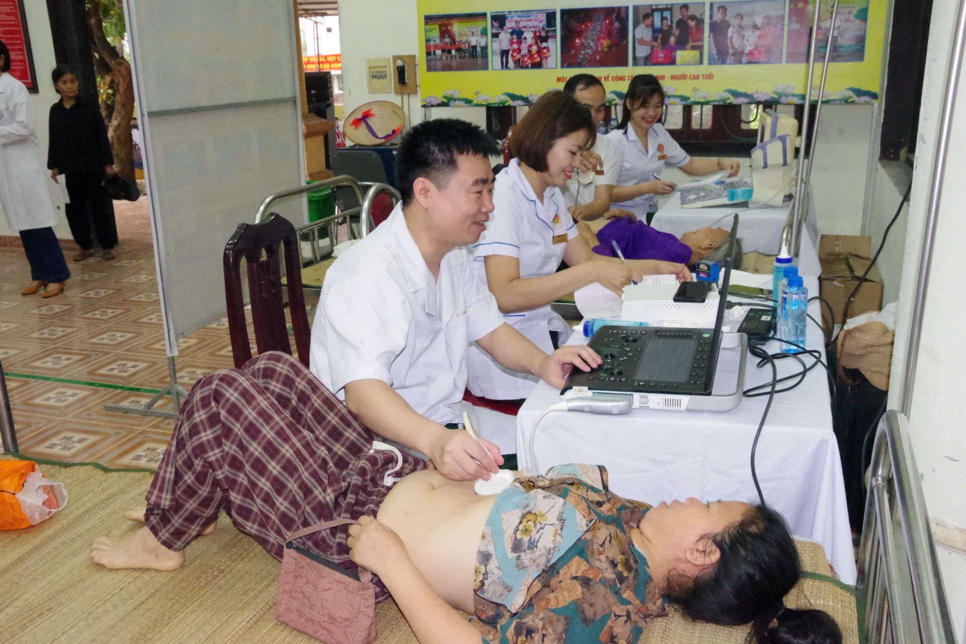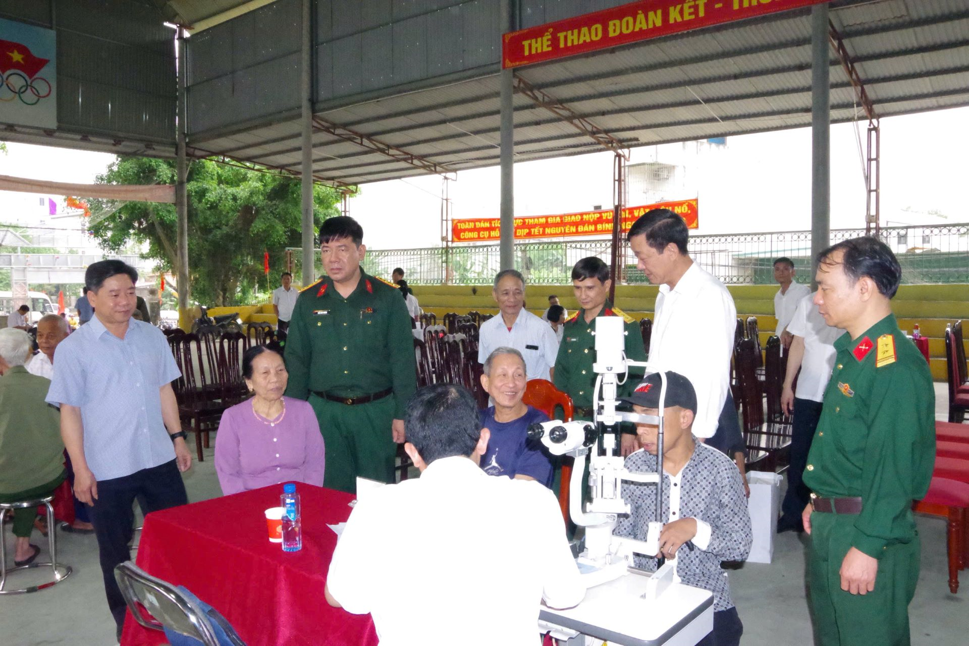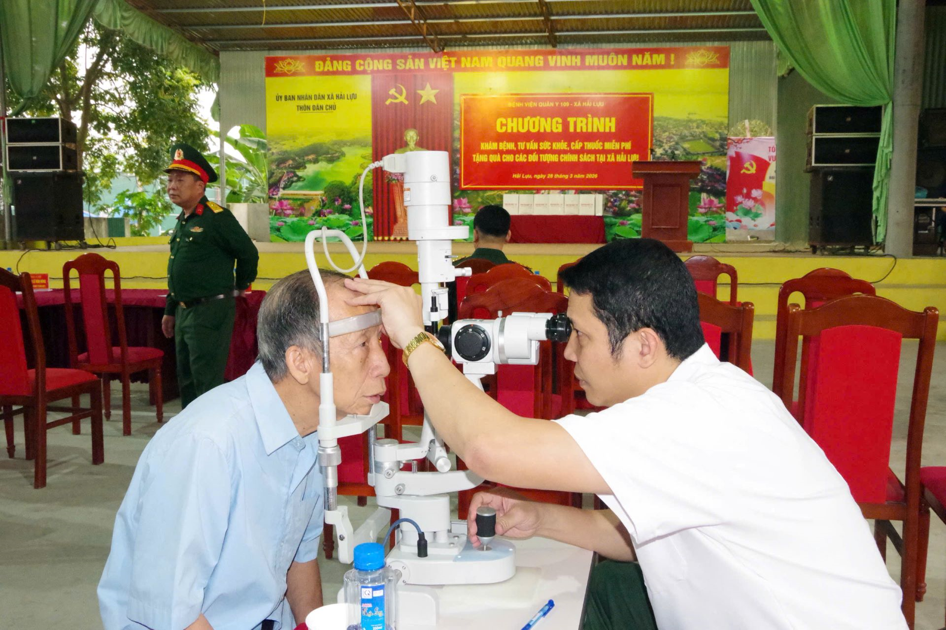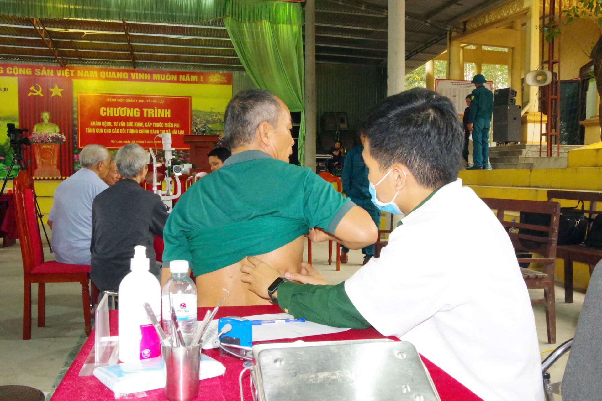 Lãnh đạo Bệnh viện Quân y 109 (Cục Hậu cần-Kỹ thuật Quân khu 2) theo dõi, chỉ đạo các thầy thuốc khám bệnh cho nhân dân xã Hải Lựu, tỉnh Phú Thọ.