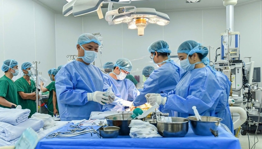 Sau giai đoạn điều trị nâng đỡ tích cực, ca phẫu thuật ghép gan được tiến hành trong điều kiện tối ưu, huy động hàng trăm y bác sĩ từ nhiều chuyên khoa. Sau nhiều giờ phẫu thuật, ca mổ đã thành công khi mạch máu gan ghép hoạt động tốt, màu sắc gan hồng trở lại.