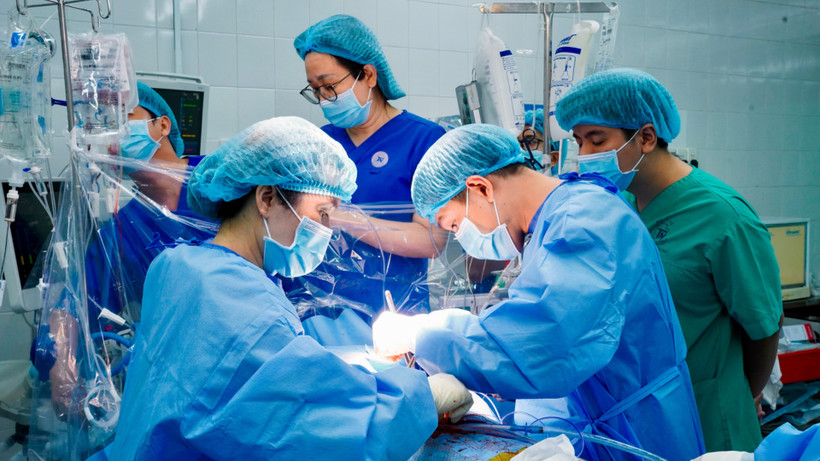Ê-kíp bác sĩ đang thực hiện ca ghép tim.