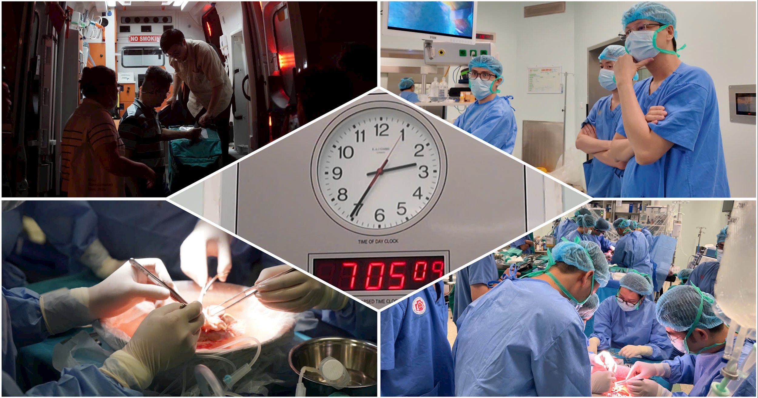 Trong trường hợp này, bệnh viện huy động hai ê-kíp phẫu thuật làm việc song song, phòng mổ hoạt động liên tục để đảm bảo tiến độ.