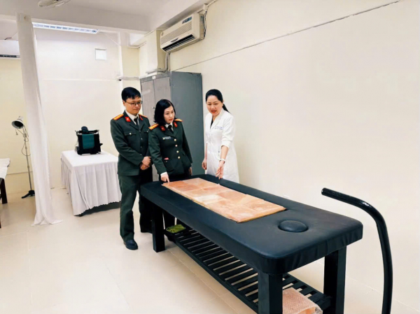 Đại tá Lê Thị Minh Nguyệt thăm quan cơ sở vật chất phục vụ công tác chữa bệnh bằng y học cổ truyền tại Bệnh xá Công an TP Đà Nẵng.