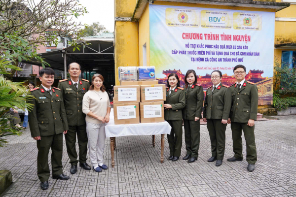 Trước hậu quả nghiêm trọng do bão lũ gây ra tại các tỉnh miền Trung thời gian gần đây, phát huy tinh thần “lá lành đùm lá rách” của dân tộc, đồng thời thiết thực hưởng ứng phong trào thi đua “Ba Nhất” (Kỷ luật nhất- Trung thành nhất - Gần dân nhất) do Bộ Công an phát động, thực hiện ý kiến chỉ đạo của Đại tá Nguyễn Thanh Vân, Giám đốc Bệnh viện Y học cổ truyền Bộ Công an, từ ngày 1/12 - 3/12, Bệnh viện Y học cổ truyền Bộ Công an tổ chức Đoàn công tác phối hợp với Cục Trang bị và kho vận, Ngân hàng BIDV chi nhánh Thanh Xuân và Công an TP Huế tổ chức chương trình tình nguyện nhằm hỗ trợ Bệnh xá Công an TP Huế và nhân dân một số địa bàn tại TP Huế bị thiệt hại nghiêm trọng do mưa lũ gây ra khắc phục hậu quả, nhanh chóng ổn định cuộc sống.