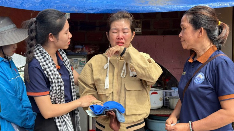 Người dân xúc động khi nhận sự hỗ trợ của Đồn Biên phòng Xuân Đài và Hội thiện nguyện Đom Đóm Phú Yên.