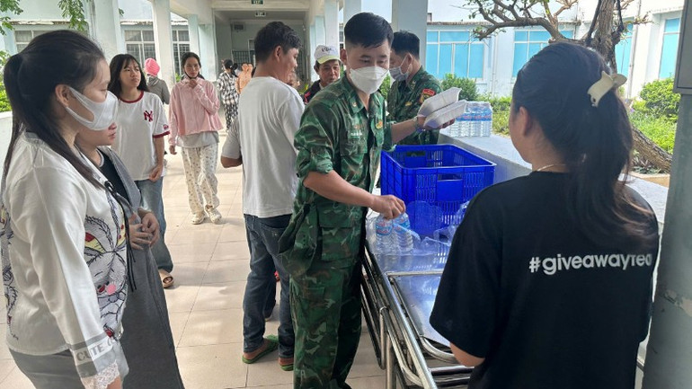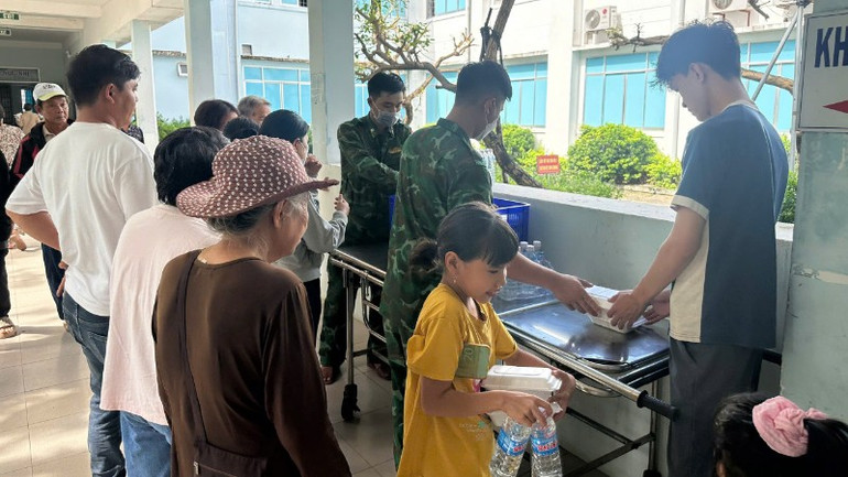 Mỗi ngày, bếp chuẩn bị và cấp phát 1.000 suất ăn miễn phí gồm cơm nóng, món mặn và canh, được đóng hộp cẩn thận. Các tổ công tác mang cơm đến tận các điểm dân cư, trường học, nhà tạm tránh bão và cả những hộ neo đơn, người già yếu. Với những bà con đang tất bật thu gom ngư cụ, sửa lại tàu thuyền để sớm vươn khơi, bữa cơm nóng giữa lúc mệt mỏi như một nguồn động viên thiết thực, kịp thời.
