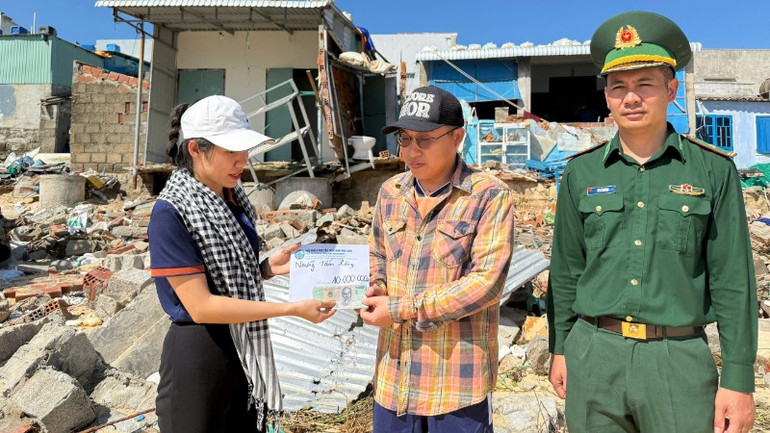 Cùng với hỗ trợ lao động, Đồn Biên phòng Xuân Đài phối hợp với Hội thiện nguyện Đom Đóm Phú Yên đến thăm hỏi và trao hỗ trợ cho 7 hộ dân có nhà bị sập hoàn toàn do bão gây ra, mỗi hộ 11 triệu đồng; hỗ trợ 11 triệu đồng đối với trường hợp một người dân thiệt mạng khi lao động trên biển; đồng thời trao 6 triệu đồng cho mỗi chủ hai tàu cá bị chìm. Tổng giá trị hỗ trợ là 100 triệu đồng, thể hiện tinh thần sẻ chia, kịp thời giúp người dân vượt qua giai đoạn khó khăn trước mắt.