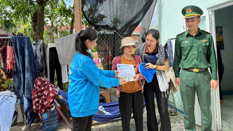 Đồn Biên phòng Xuân Đài phối hợp với Hội thiện nguyện Đom Đóm Phú Yên đến thăm hỏi và trao hỗ trợ bị thiệt hại trong cơn bão số 13.