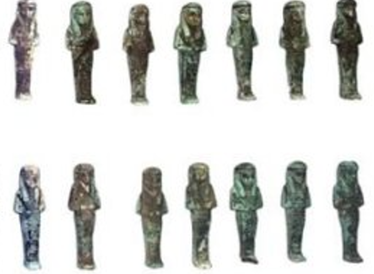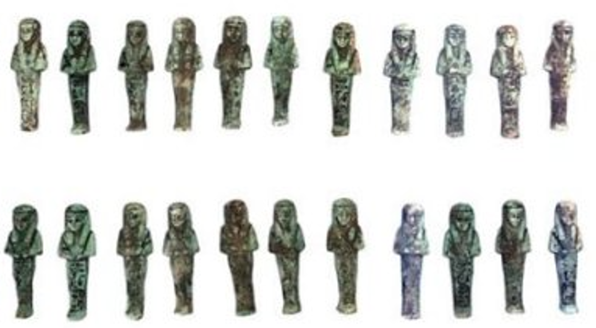 Chúng có tên là Ushabti. Ushabti là những bức tượng nhỏ mô phỏng người hầu được đặt quanh phía bắc lăng mộ Vua Shoshenq III như một phần của nghi lễ tôn giáo Ai Cập cổ đại. Ảnh: @Đại học Sorbonne.