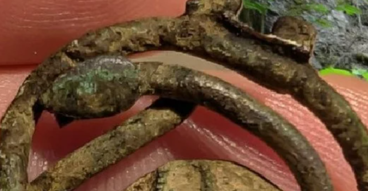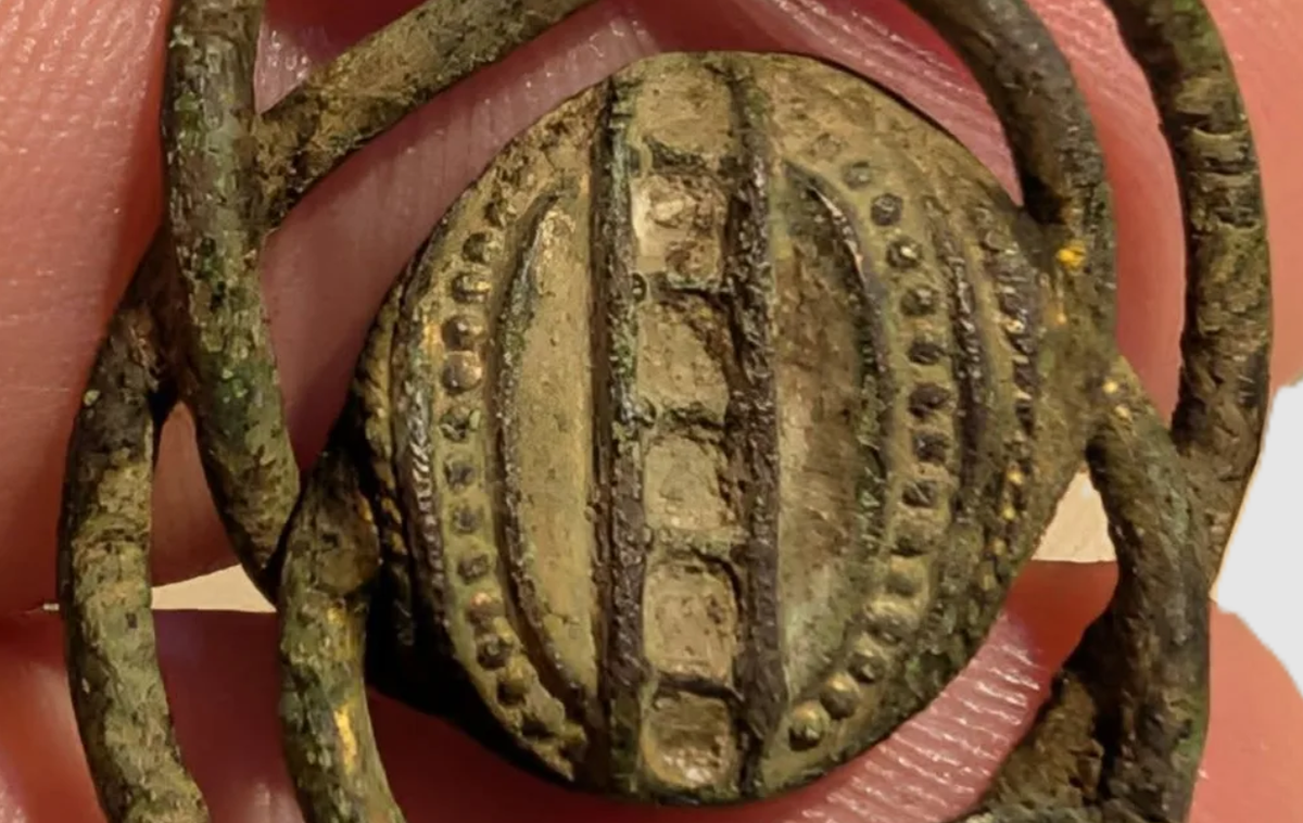 Vật thể này rõ ràng là một chiếc trâm cài, hoàn chỉnh về cấu trúc chức năng: một cấu trúc hình tròn kép hình hai con rắn lồng nhau làm từ hợp kim đồng chắc chắn, có một vòng chặn cho kim ghim. Ảnh: @Jay Sangster-Hawkins.