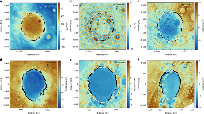 Các tính toán mới của nhóm tác giả dẫn đầu bởi tiến sĩ Jeffrey Andrews-Hanna từ Đại học Arizona (Mỹ) cho thấy hố trũng này hẹp lại ở phía Nam, gợi ý rằng tiểu hành tinh cổ đại đã trượt từ phía Bắc xuống phía Nam thay vì lao theo hướng ngược lại.