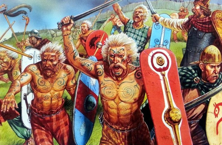 Họ nổi tiếng là chiến binh dũng mãnh. Người Celt chiến đấu gần như không mặc quần áo, họ nhuộm xanh cơ thể bằng thuốc nhuộm woad khiến kẻ thù khiếp sợ. Ảnh: Pinterest.