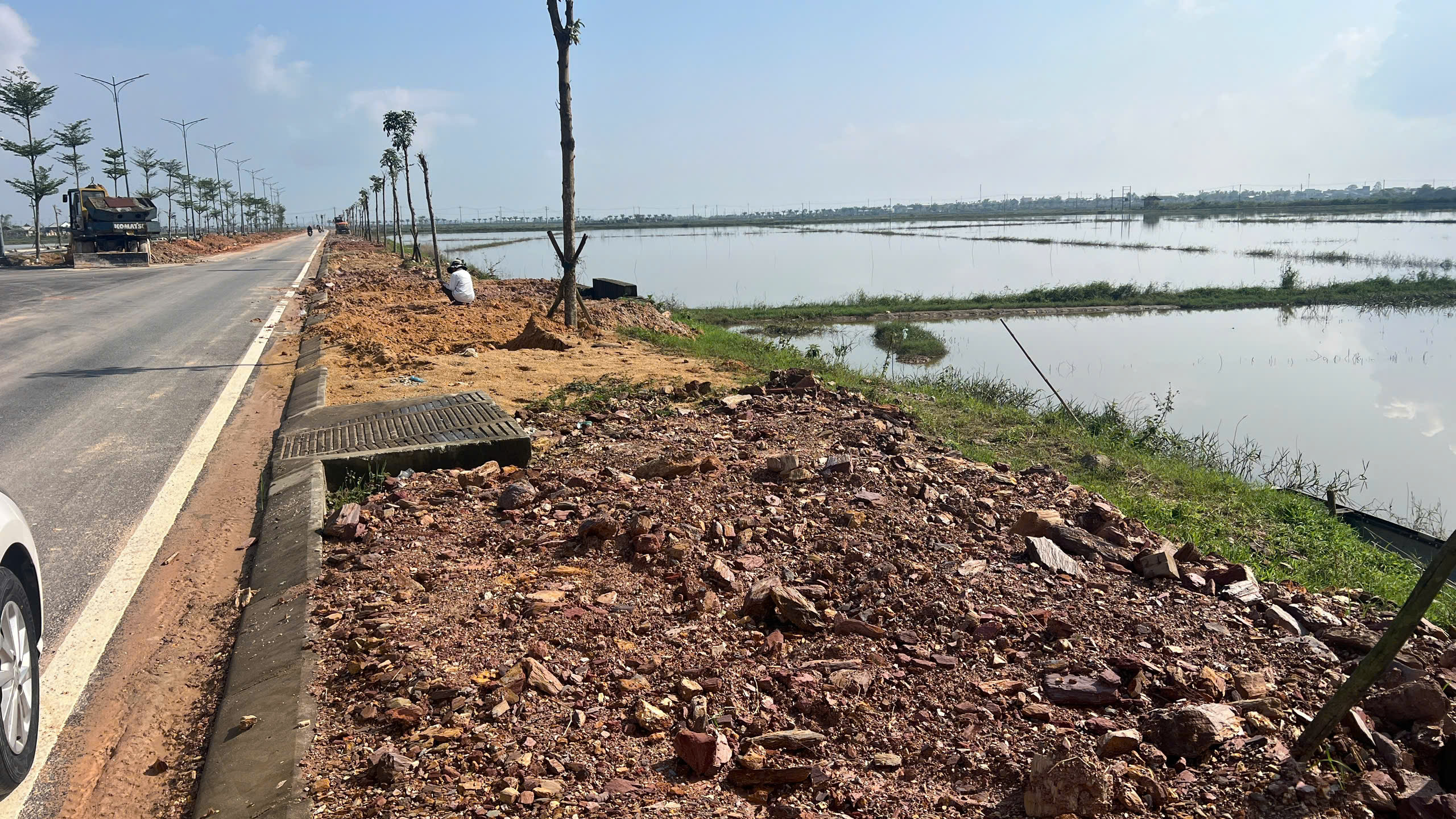 Đến sáng 18-12, tại hạng mục san nền vỉa hè gói thầu số 14 do Công ty Minh Đạt thi công cơ bản không còn đá phong hóa.