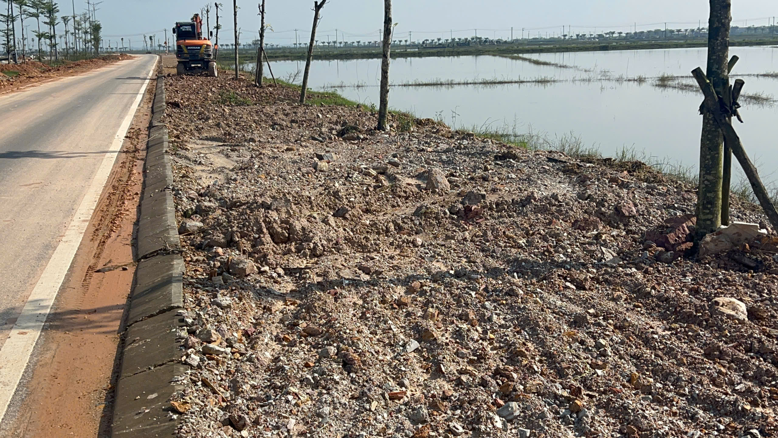 Chủ đầu tư đã lập biên bản hiện trường, yêu cầu nhà thầu vận chuyển toàn bộ đá phong hóa ra khỏi phạm vi công trường và tạm đình chỉ thi công đối với hạng mục đắp đất K95 cho đến khi hoàn thành việc khắc phục.