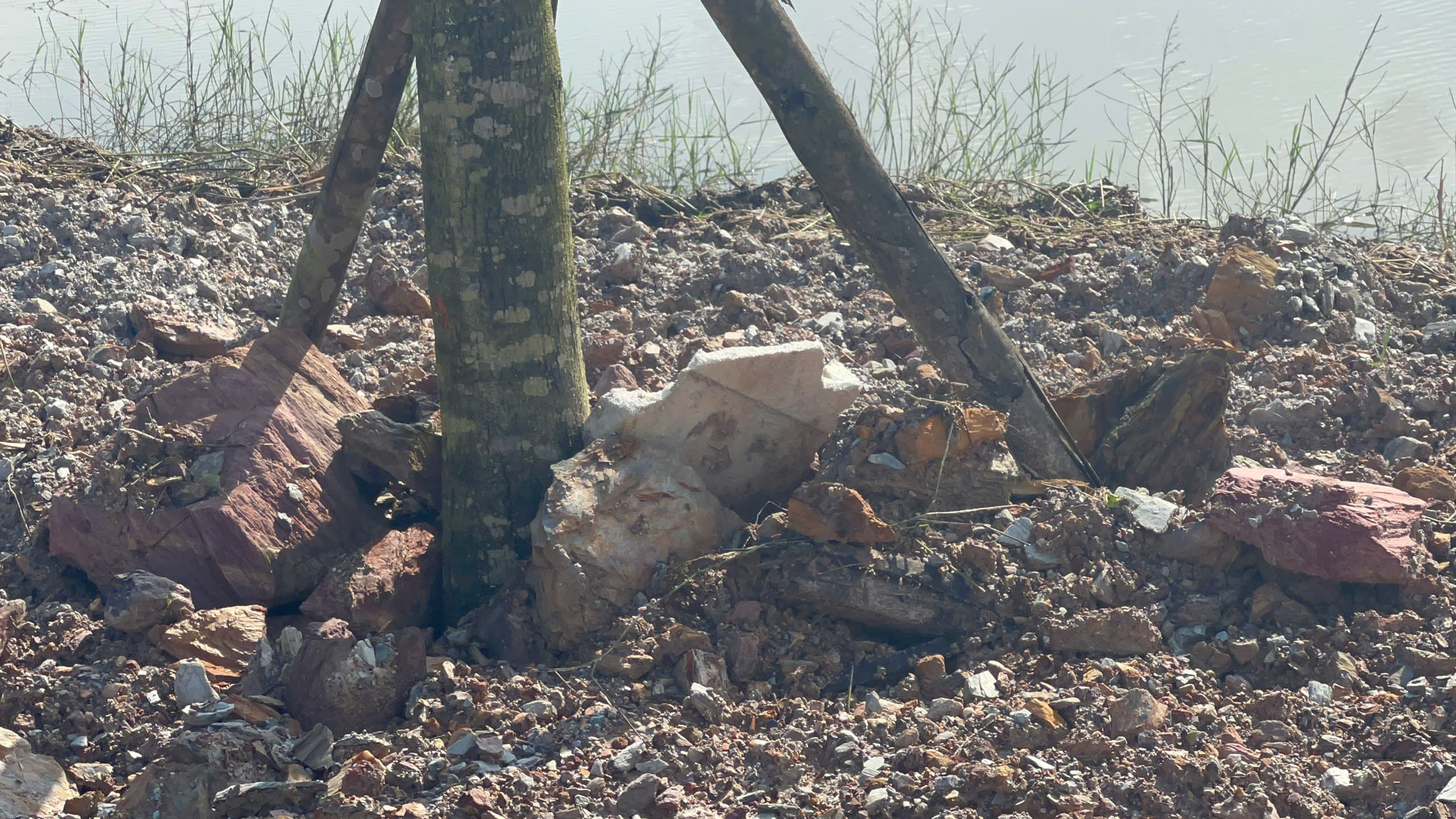 Đất phong hóa còn sót lại trên nền đắp vỉa hè, trong đó lẫn lộn nhiều loại đá nhỏ.