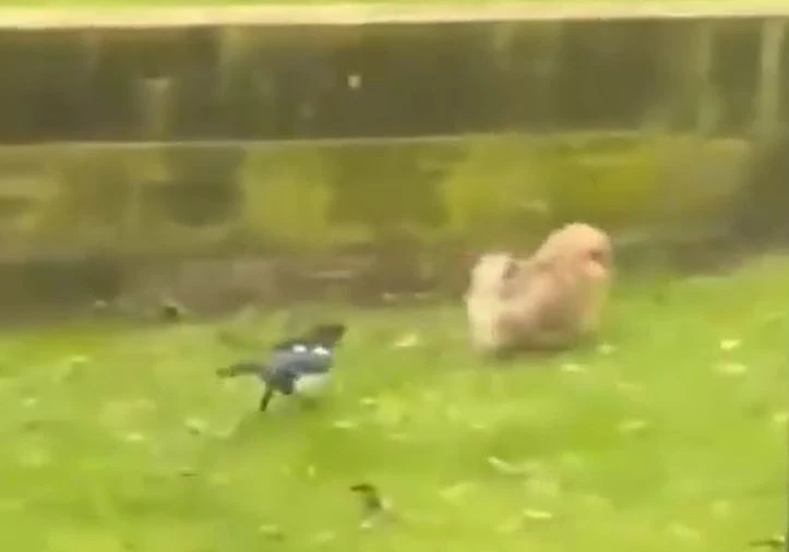 Theo hình ảnh trong video, ban đầu chú chó hăng hái lao theo con chim với vẻ đầy tự tin, liên tục sủa vang và rượt đuổi trên bãi cỏ. Thế nhưng, sau một hồi bay lượn né tránh, con chim bất ngờ quay ngược lại tấn công, khiến chú chó giật mình bỏ chạy thục mạng.
