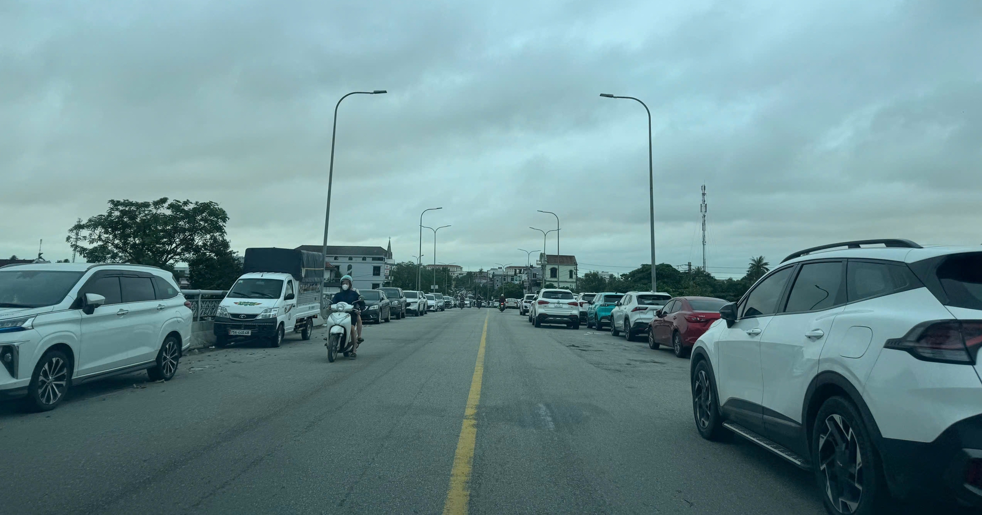 Ô tô đậu trên cầu Chợ Dinh. Ảnh chụp lúc 8 giờ ngày 4-11.