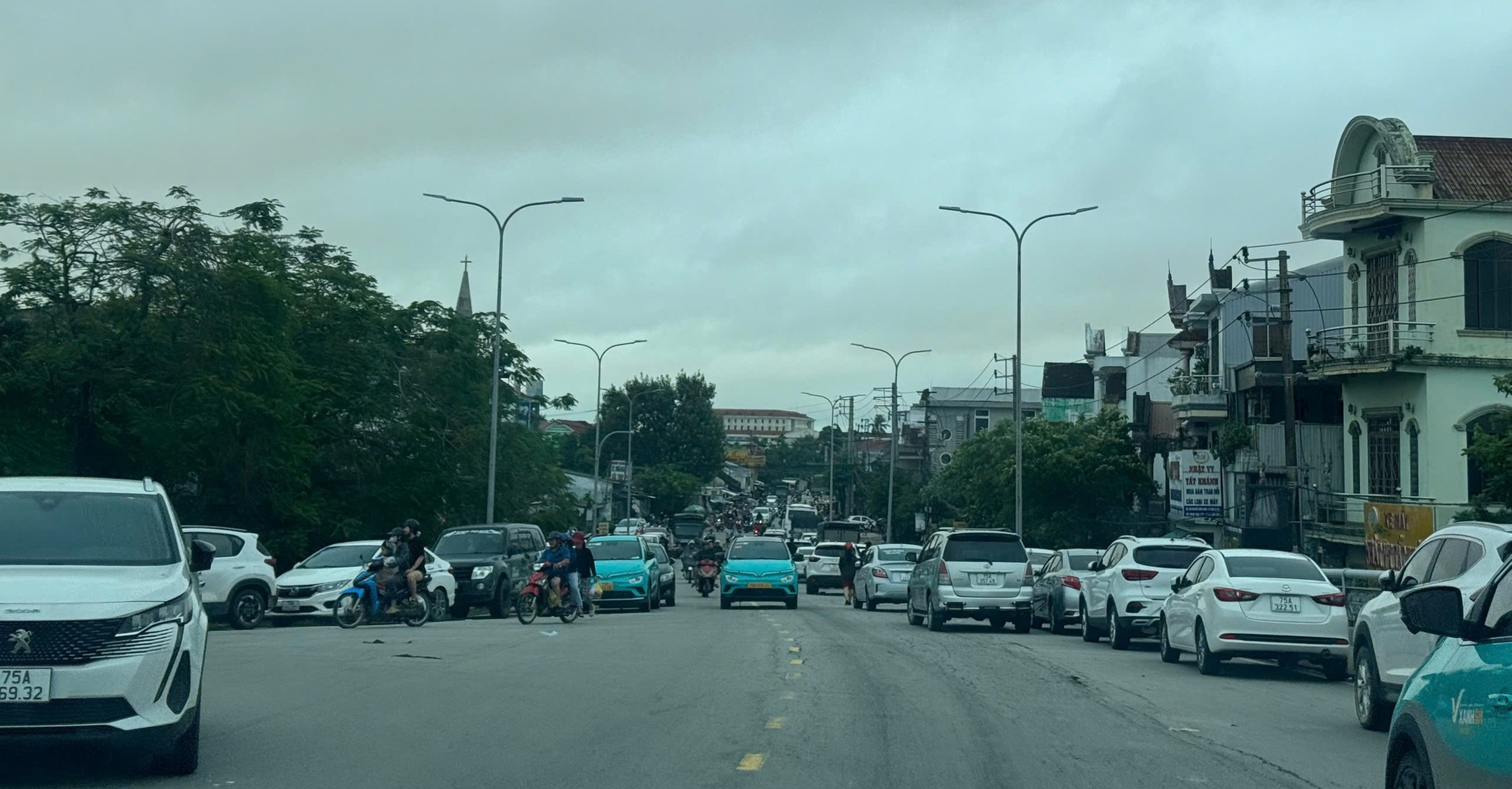 Từ điểm đầu ở phường Mỹ Thượng đến điểm cuối ở phường Phú Xuân, hàng trăm ô tô vẫn "đóng đô" trên cầu Chợ Dinh.
