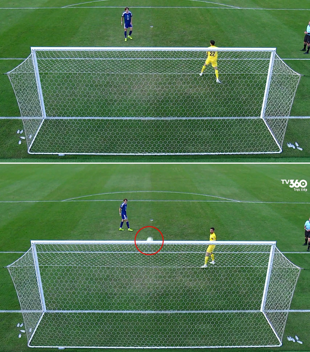 Sau vài giây hội ý, trọng tài xác định bóng đã hoàn toàn qua vạch cầu môn và công nhận bàn thắng cho U23 Nhật Bản. Tình huống “dở khóc dở cười” này lập tức trở thành bước ngoặt của loạt đấu súng.