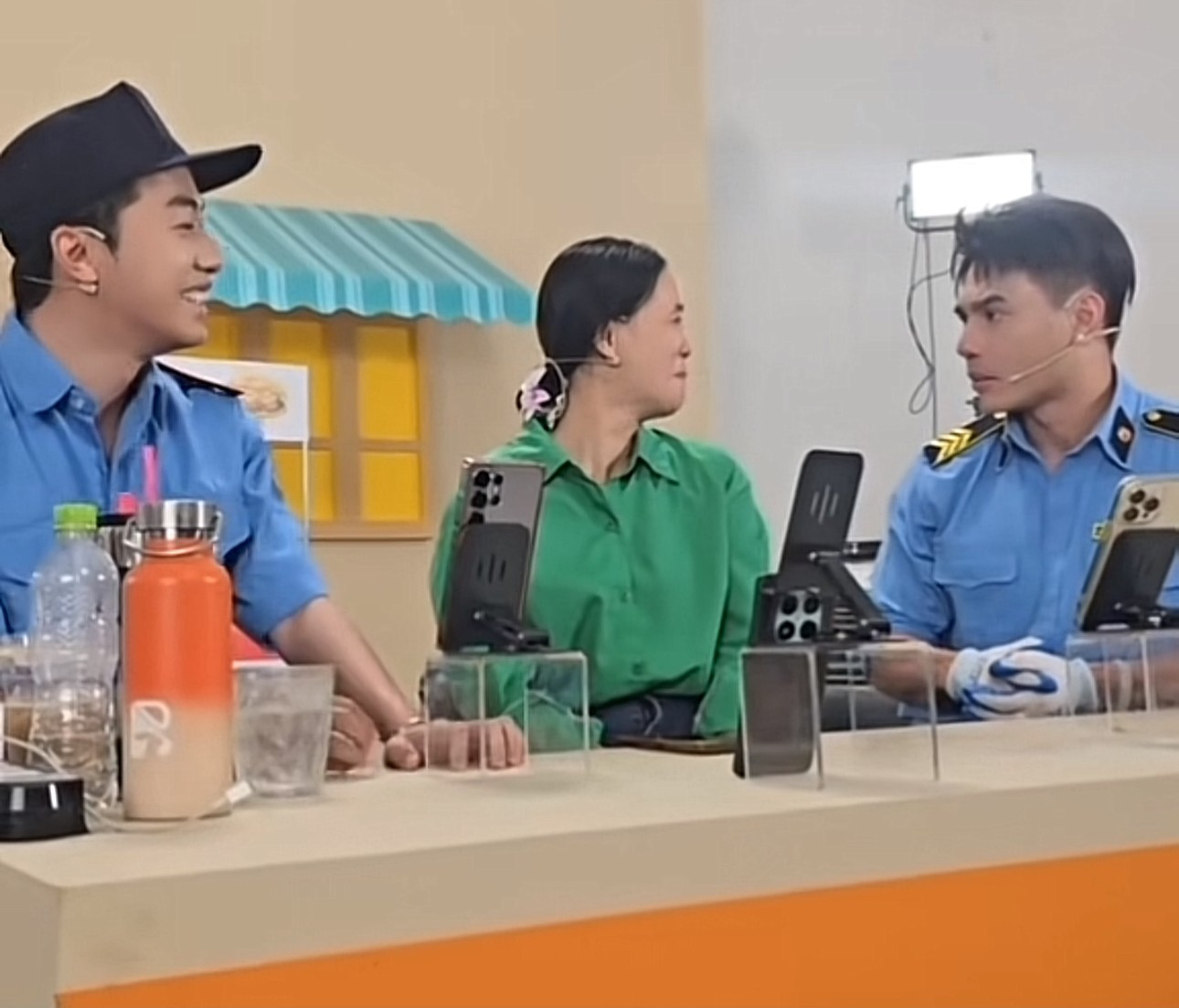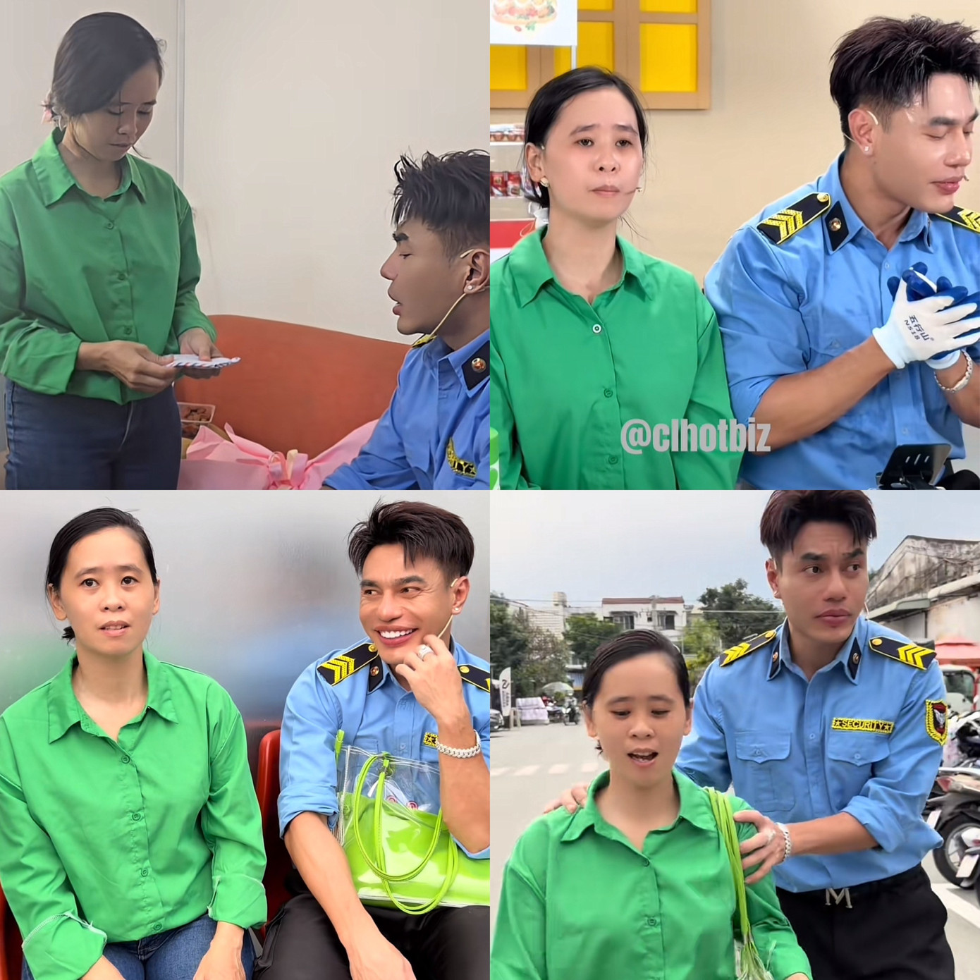 Hân Nguyễn và Lê Dương Bảo Lâm tương tác dễ thương, được gọi là "cô công nhân và anh bảo vệ".