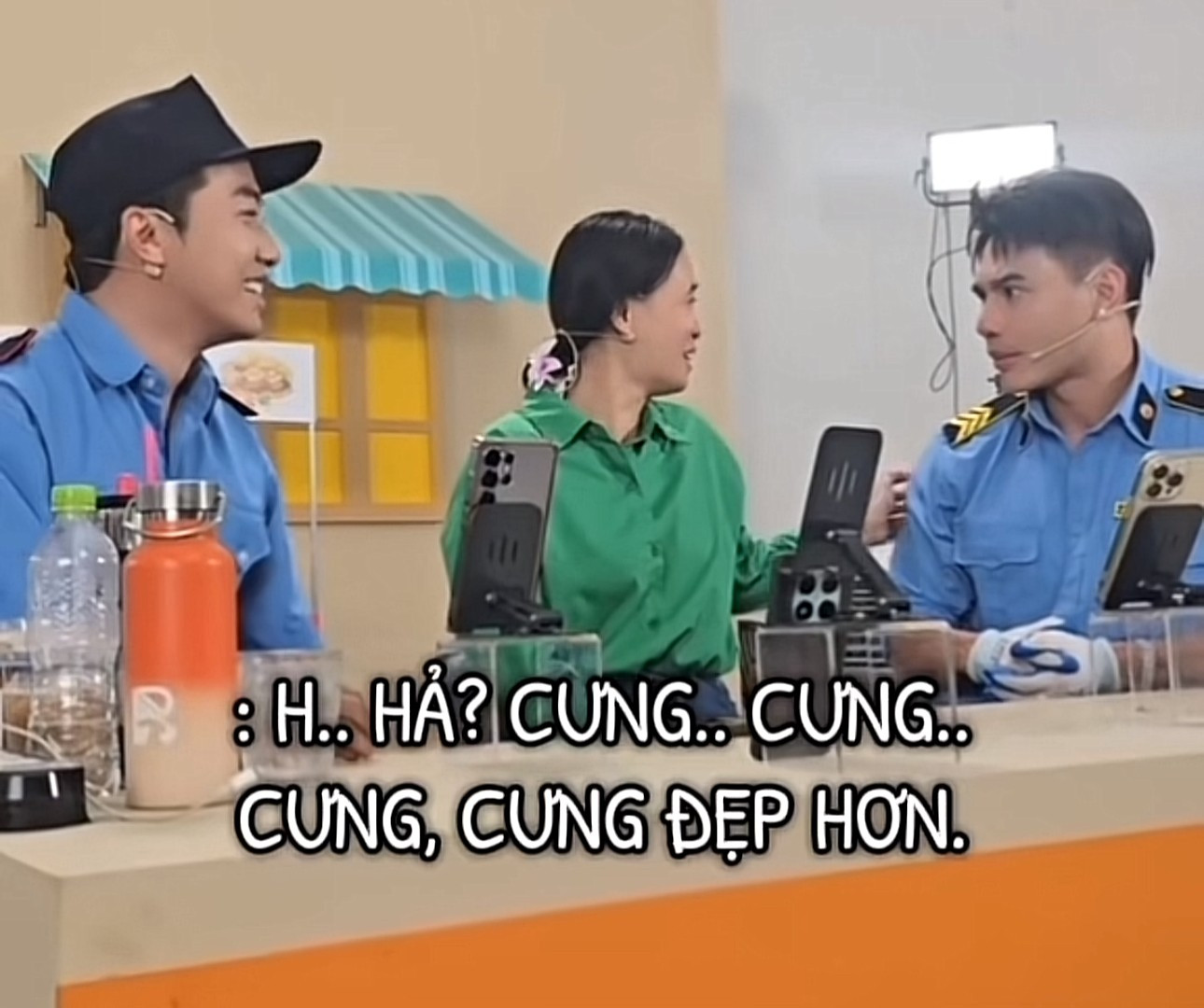Lúc này, nữ TikToker lưỡng lự và nhìn sang Cris Phan. Lê Dương Bảo Lâm lập tức "nhắc" chị Hân, khiến chị giật mình và ấp úng trả lời tên anh. Nam nghệ sĩ còn đùa rằng may mà chị trả lời chính xác nên lát mới có thể rời khỏi chỗ này.