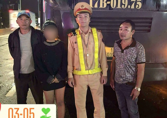 Vào 3 giờ sáng cùng ngày, Đội CSGT đường bộ số 1 - Phòng CSGT Công an tỉnh Quảng Ngãi trong quá trình tuần tra, kiểm soát trên Quốc lộ 1 đã tiếp nhận tin báo của tài xế xe khách BKS 17B-019.75 về việc trên xe có cháu gái quê Quảng Ngãi cần được giúp đỡ.