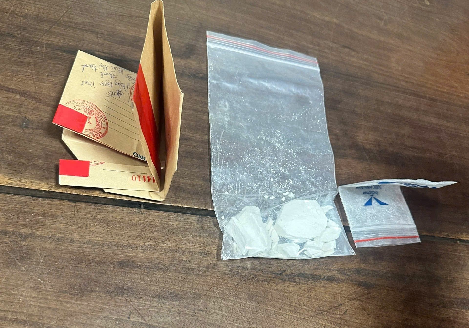 Lực lượng chức năng tiến hành khám xét khẩn cấp chỗ ở của Nguyễn Trung Thành, phát hiện thu giữ tang vật gồm: 216,1 gam Methamphetamine và 5,2 gam Heroin.