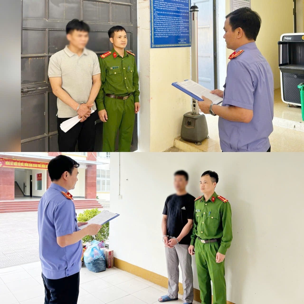 Kiểm sát viên và Điều tra viên tống đạt các Quyết định tố tụng đối với bị can Nguyễn Trung Thành và Trần Quốc Hoàn.