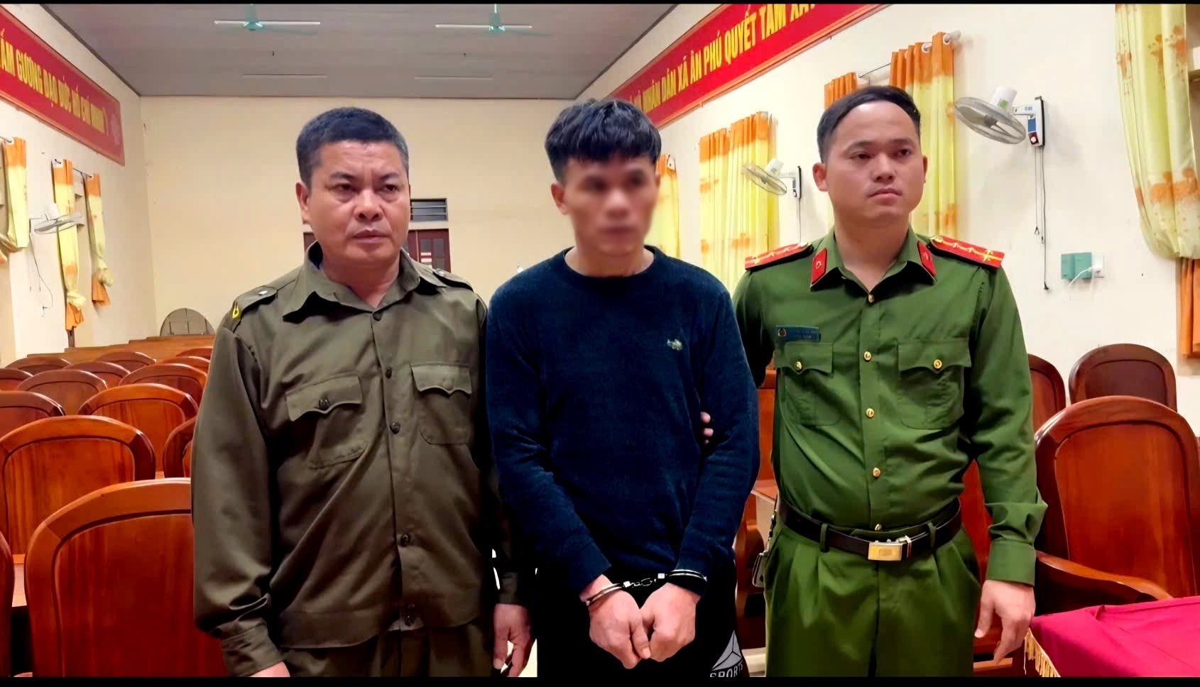 Lực lượng chức năng bắt giữ Nguyễn Trung Thành.