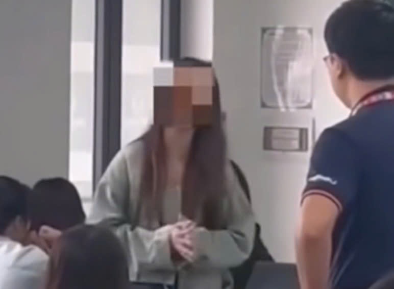 Nữ sinh cự cãi với giảng viên. Ảnh: Cắt từ clip.