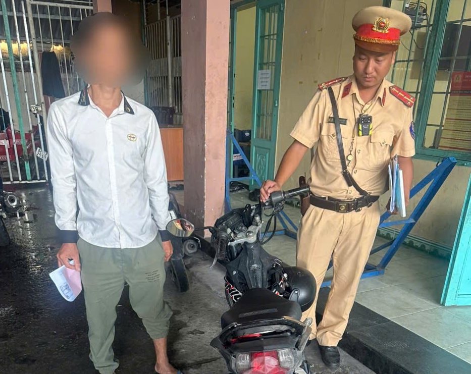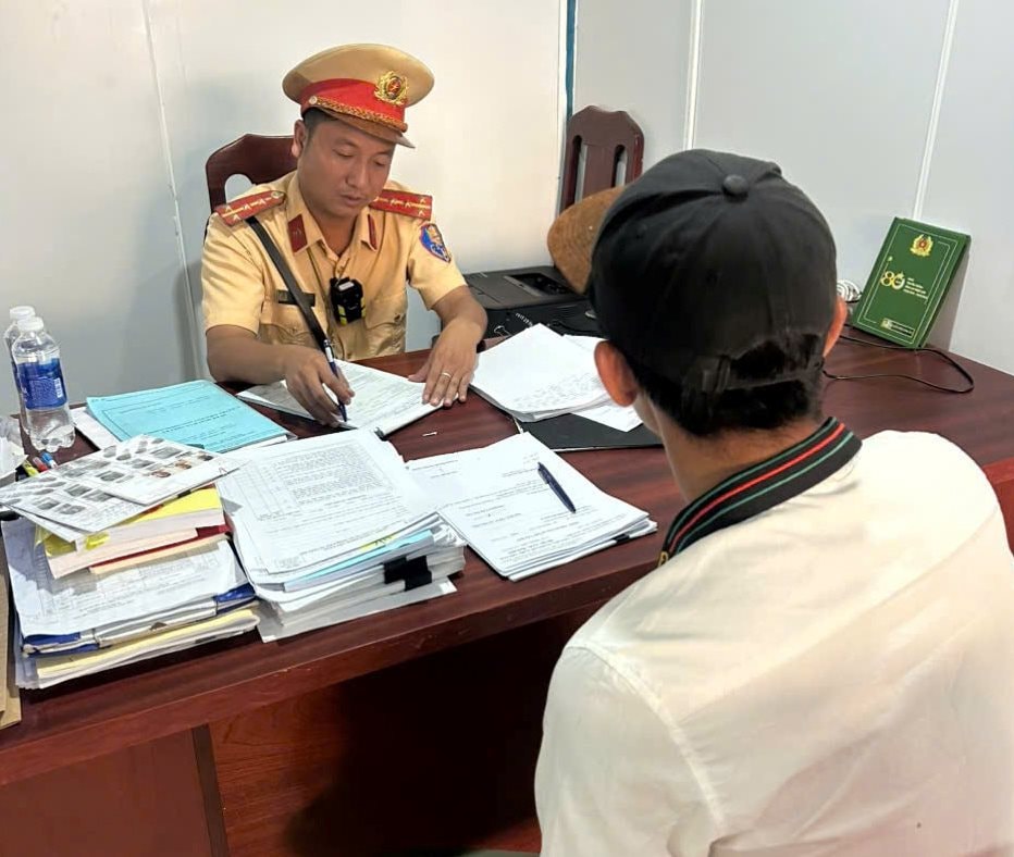 Sau khi tiếp nhận thông tin, Trạm CSGT Quốc lộ 13 tiến hành xác minh, yêu cầu người điều khiển xe mô tô là T.T.V (SN 1/10/1991, thường trú: tổ 1, phường Long Nguyên, TP. HCM) đến trụ sở làm việc.