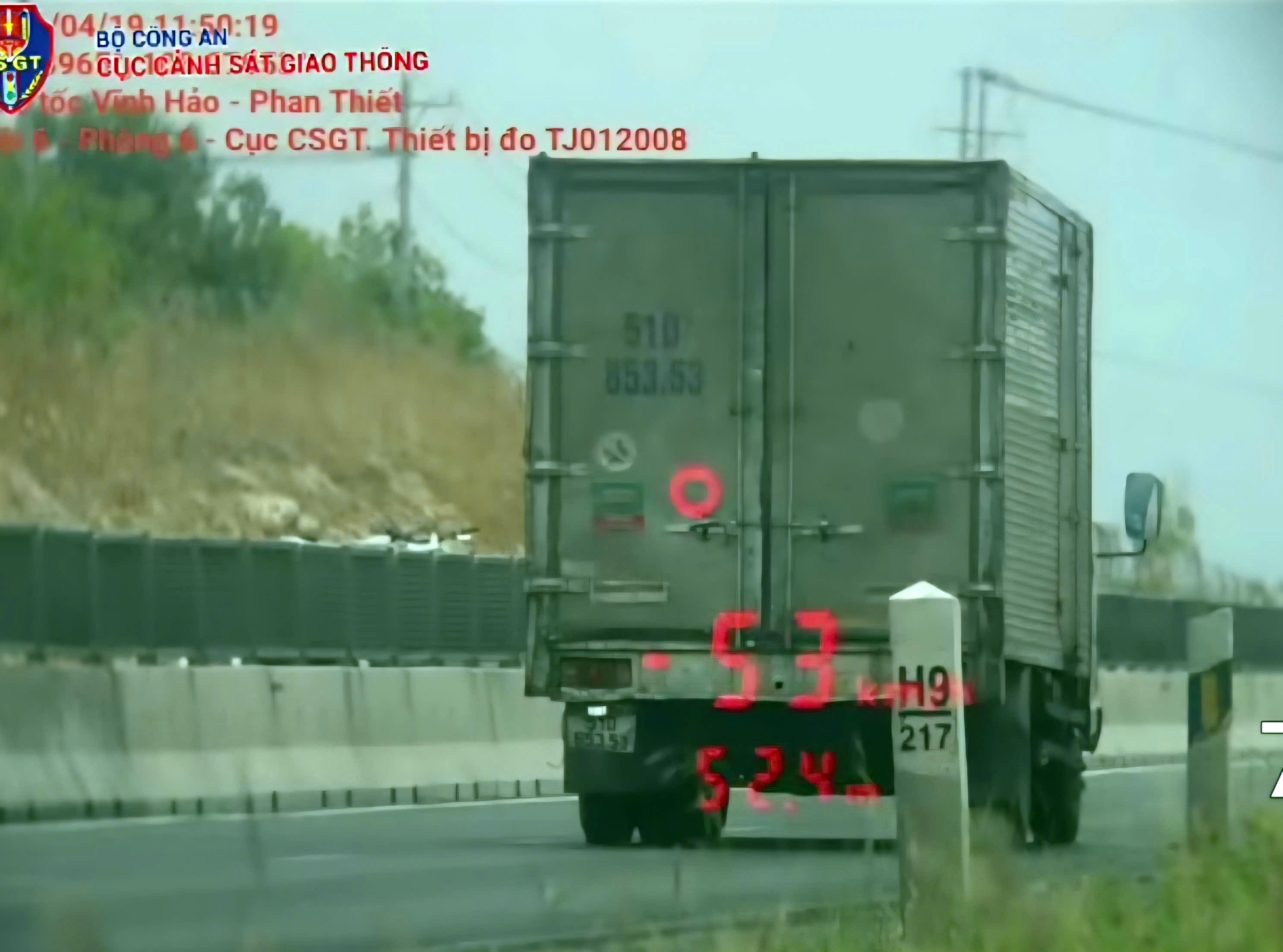 Xe tải bị ghi hình chạy với tốc độ chỉ 53 km/giờ.