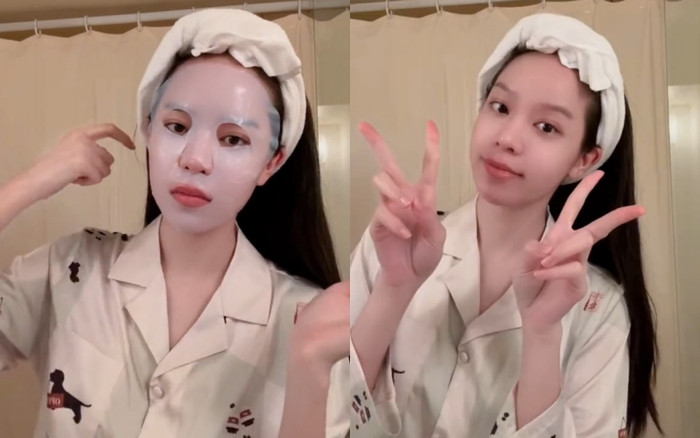 Mặt nạ giấy không phải sản phẩm mới, nhưng cách Hoa hậu Việt Nam 2022 biến sản phẩm này thành "người bạn đồng hành không thể thiếu" lại cho thấy tư duy làm đẹp rất hiện đại và thực tế của thế hệ Gen Z. Thay vì chạy theo những liệu trình phức tạp, Thanh Thủy chọn giải pháp tối giản nhưng hiệu quả cao, điều mà bất kỳ cô gái bận rộn nào cũng có thể học hỏi. Ảnh: FBNV