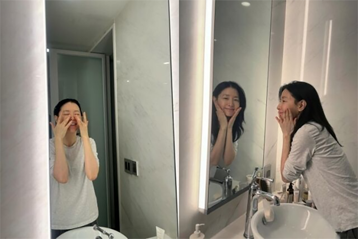 Trong những hình ảnh được công bố, Lee Young Ae xuất hiện trước gương phòng tắm với gương mặt hoàn toàn không trang điểm, chuẩn bị bước vào quá trình làm sạch da. Dù không son phấn, làn da của nữ diễn viên vẫn căng mịn, trong trẻo và đều màu, khiến nhiều người khó tin cô đã bước sang tuổi ngũ tuần. Nụ cười nhẹ nhàng cùng thần thái điềm đạm càng làm nổi bật vẻ đẹp tự nhiên, thanh thoát vốn là thương hiệu của Lee Young Ae suốt nhiều năm qua.