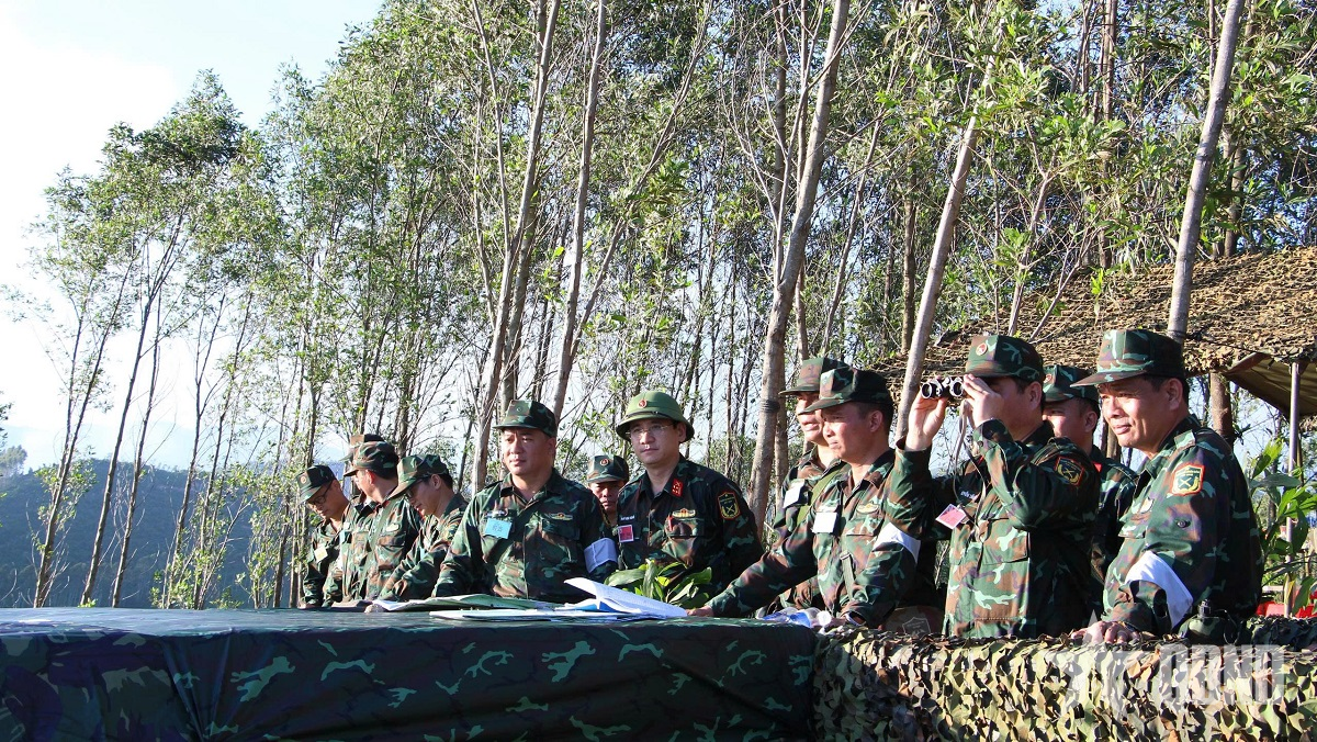 Khung tập Sư đoàn 2 thực hành trinh sát thực địa trong diễn tập.