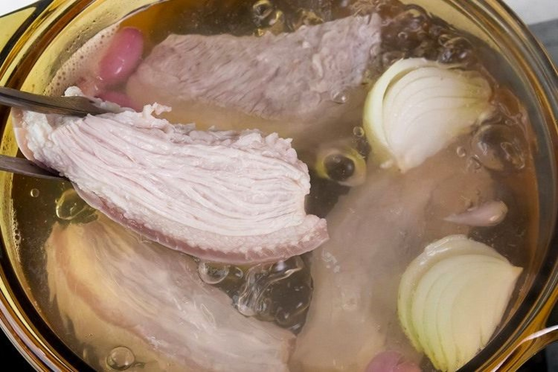 Để luộc thịt ngon bạn nên tránh cho vào nước luộc các gia vị như bột nêm, bột ngọt, nước mắm, đường, ngũ vị hương và tỏi sẽ giúp thịt giữ được màu trắng, vị thanh ngọt tự nhiên và nước luộc trong, ngon. (Ảnh: Reddit)
