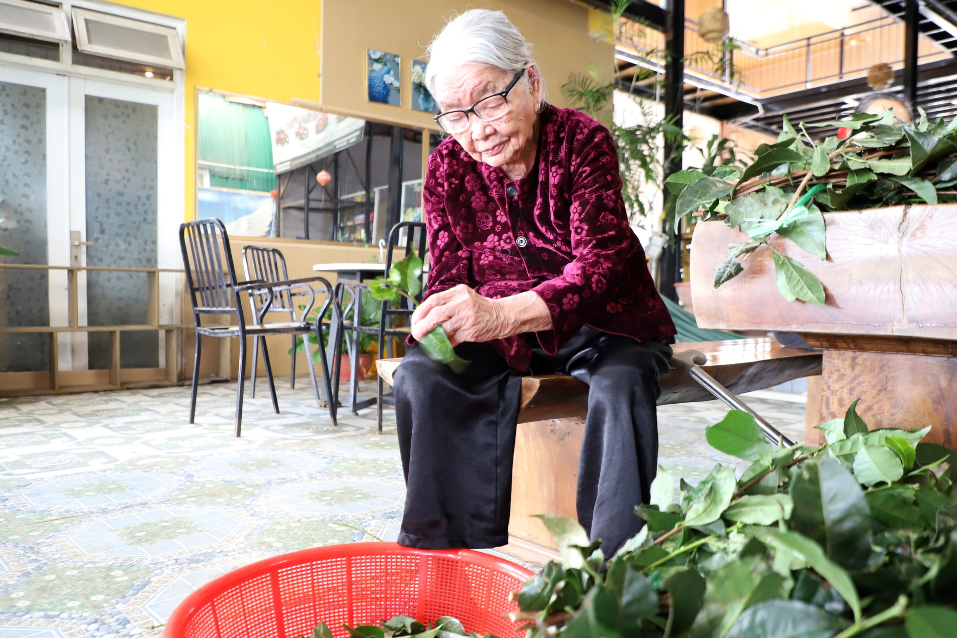 Hằng ngày, ngoài thời gian trò chuyện, công việc yêu thích nhất của cụ Gái và cụ Tèo là nhặt rau, nhặt chè xanh và đóng hạt dưa.