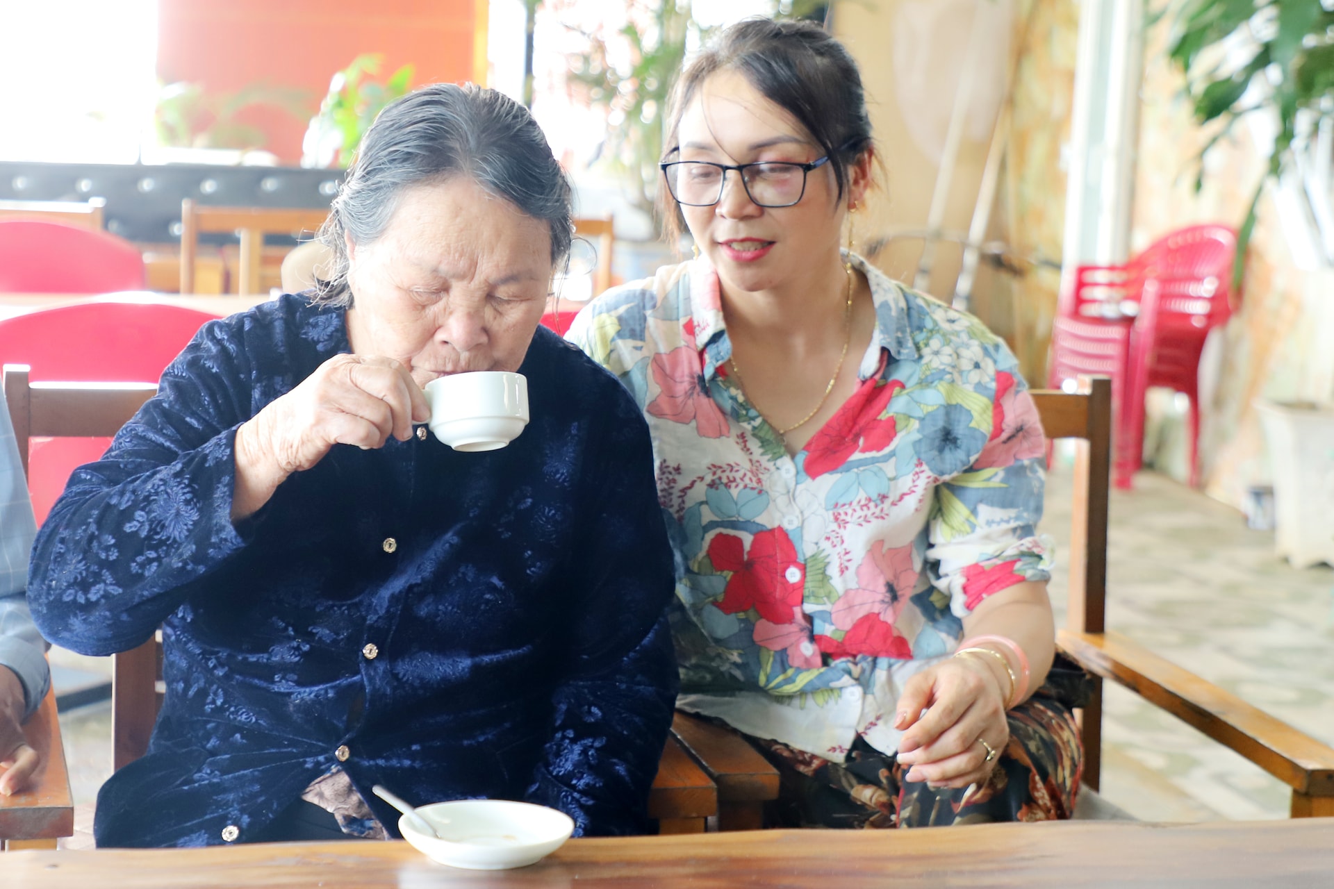 Cụ Nguyễn Thị Tèo, 95 tuổi, hằng ngày vẫn tự đi ăn sáng và thưởng thức cà phê