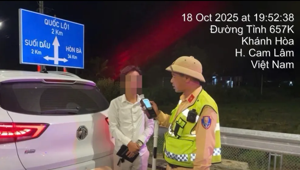 Gần 20 giờ ngày 18-10, tổ CSGT thuộc Đội CSGT số 6 làm nhiệm vụ tại km15 cao tốc Nha Trang - Cam Lâm phát hiện tài xế CQAT (28 tuổi, trú tại phường Hòa Cường, Đà Nẵng) vi phạm điều khiển xe ô tô trên đường mà trong hơi thở có nồng độ cồn 0,469 miligam/lít khí thở.