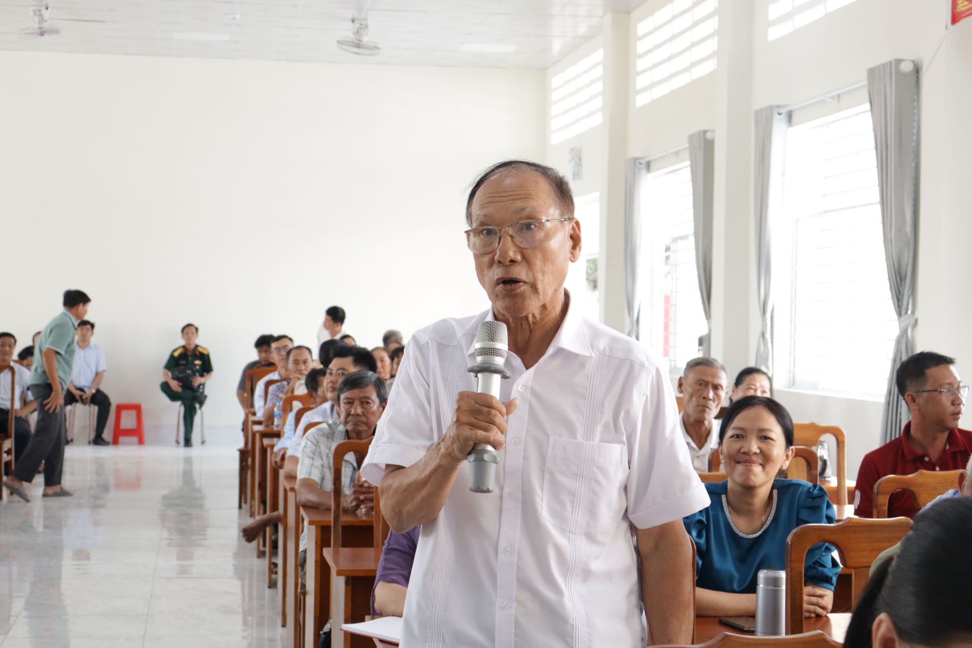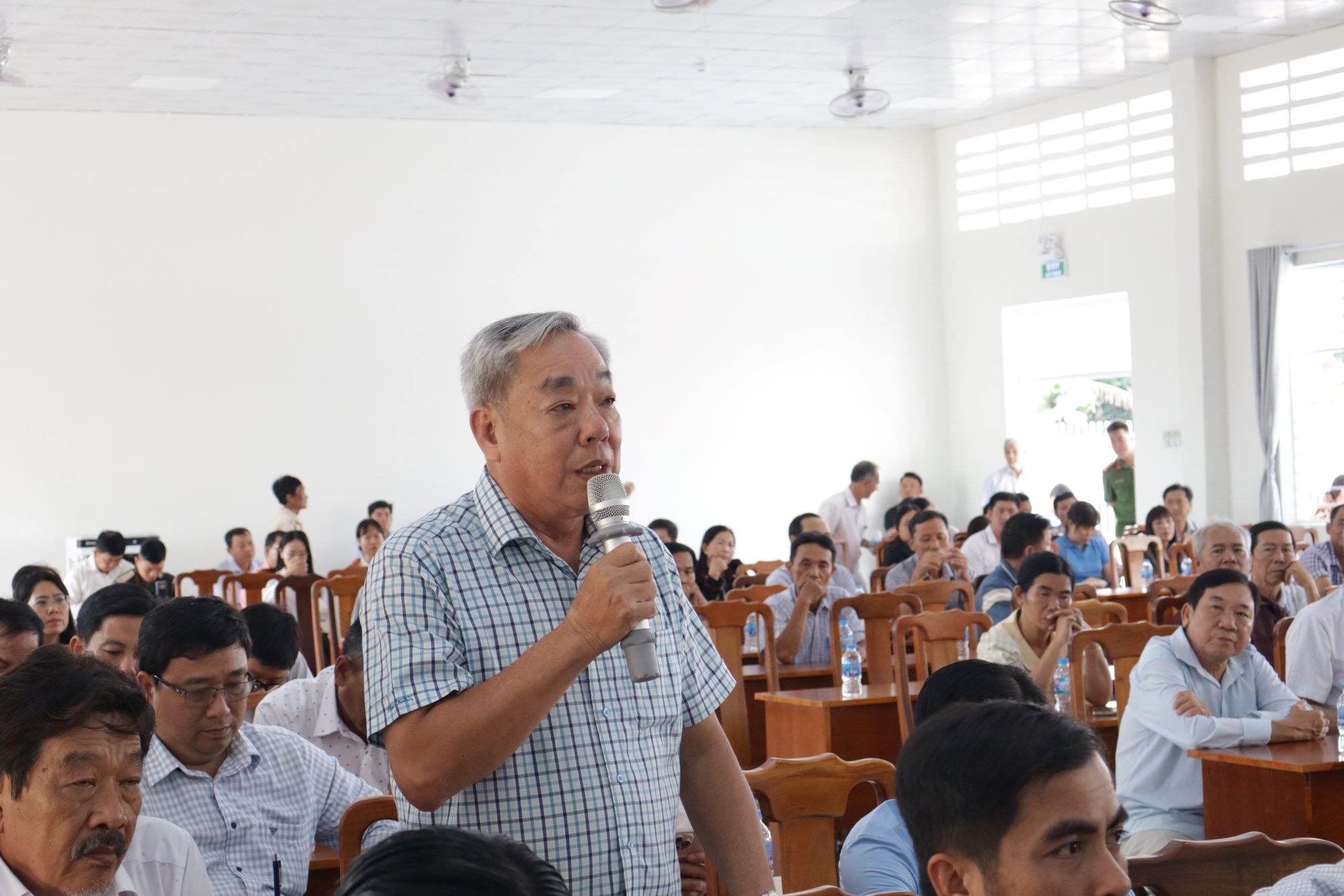 Một số cử tri phát biểu ý kiến tại buổi gặp gỡ, tiếp xúc các ứng cử viên ĐBQH đơn vị bầu cử số 1. Ảnh: NHẪN NAM