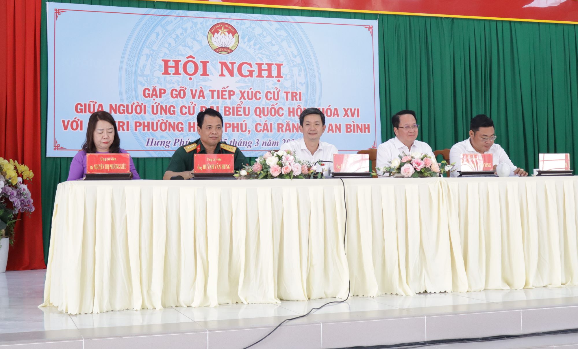 Chiều 5-3, năm ứng cử viên đại biểu Quốc hội (ĐBQH) đơn vị bầu cử số 1, TP Cần Thơ đã có buổi gặp gỡ, tiếp xúc cử tri các phường Hưng Phú, Cái Răng và An Bình để trình bày chương trình hành động và lắng nghe góp ý của cử tri.