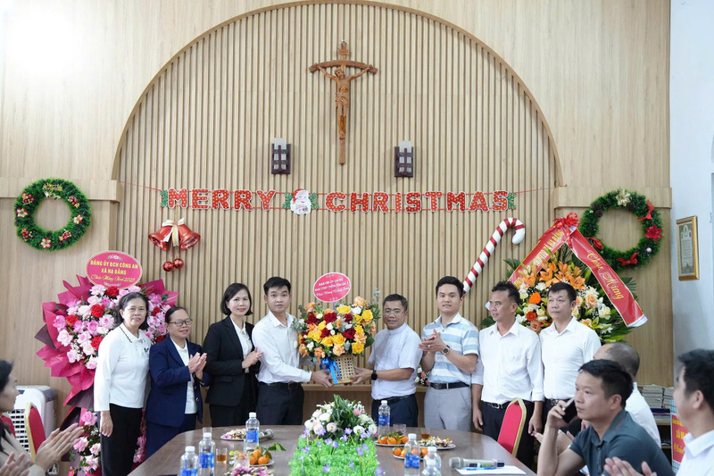 Lãnh đạo xã, thôn chúc mừng linh mục và bà con giáo dân nhân dịp Lễ Giáng sinh, thể hiện sự quan tâm, gắn bó và tinh thần đoàn kết lương - giáo tại thôn Yên Lạc 3, xã Hạ Bằng TP. Hà Nội.