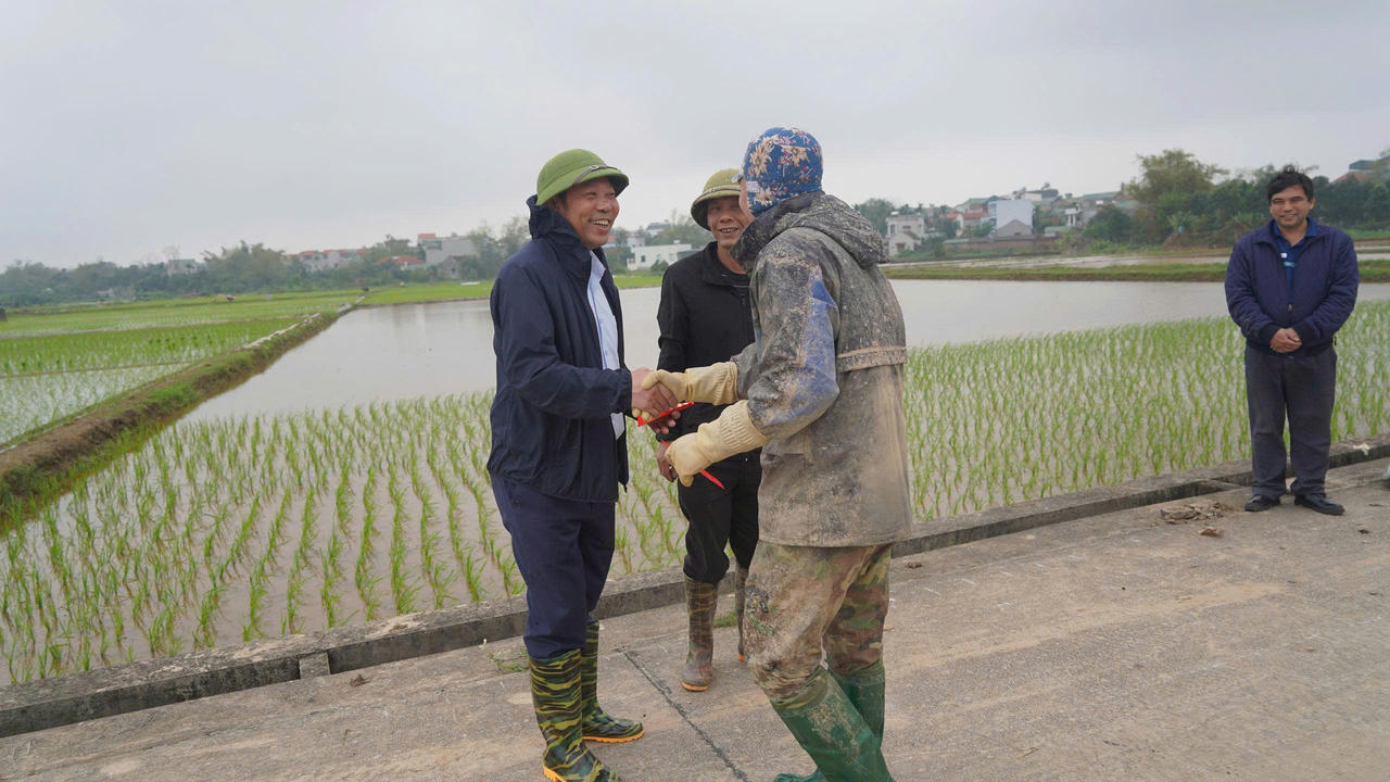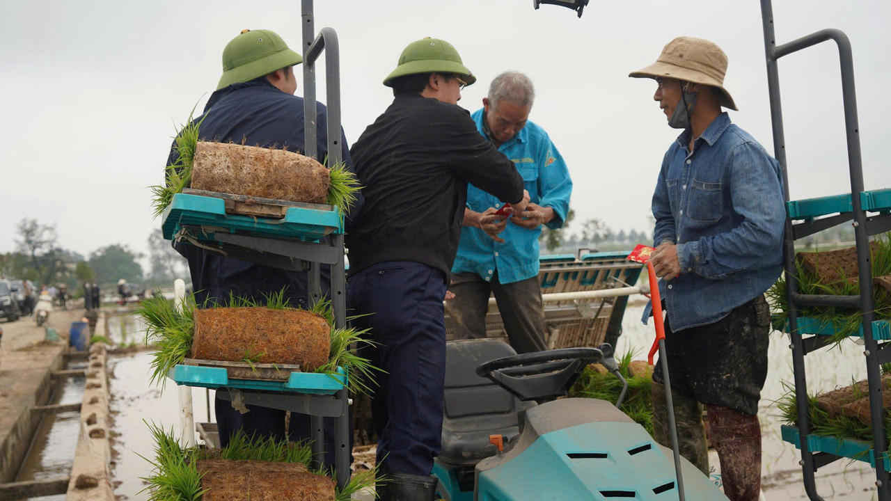 Tại cánh đồng xứ Đồng Cửa Đanh, khu vực Hương Ngải, nơi bà con xã viên đang triển khai cấy lúa bằng máy, các lãnh đạo đã trực tiếp kiểm tra vận hành mô hình cơ giới hóa trong sản xuất nông nghiệp. Đồng chí Nguyễn Minh Hồng - Bí thư Đảng ủy, Chủ tịch HĐND; đồng chí Cấn Văn Hương - Phó Bí thư Đảng ủy, Chủ tịch UBND xã... đã trực tiếp lên máy cấy, tham gia cấy lúa cùng bà con, thể hiện tinh thần sâu sát cơ sở, đồng hành cùng nhân dân trong lao động sản xuất.