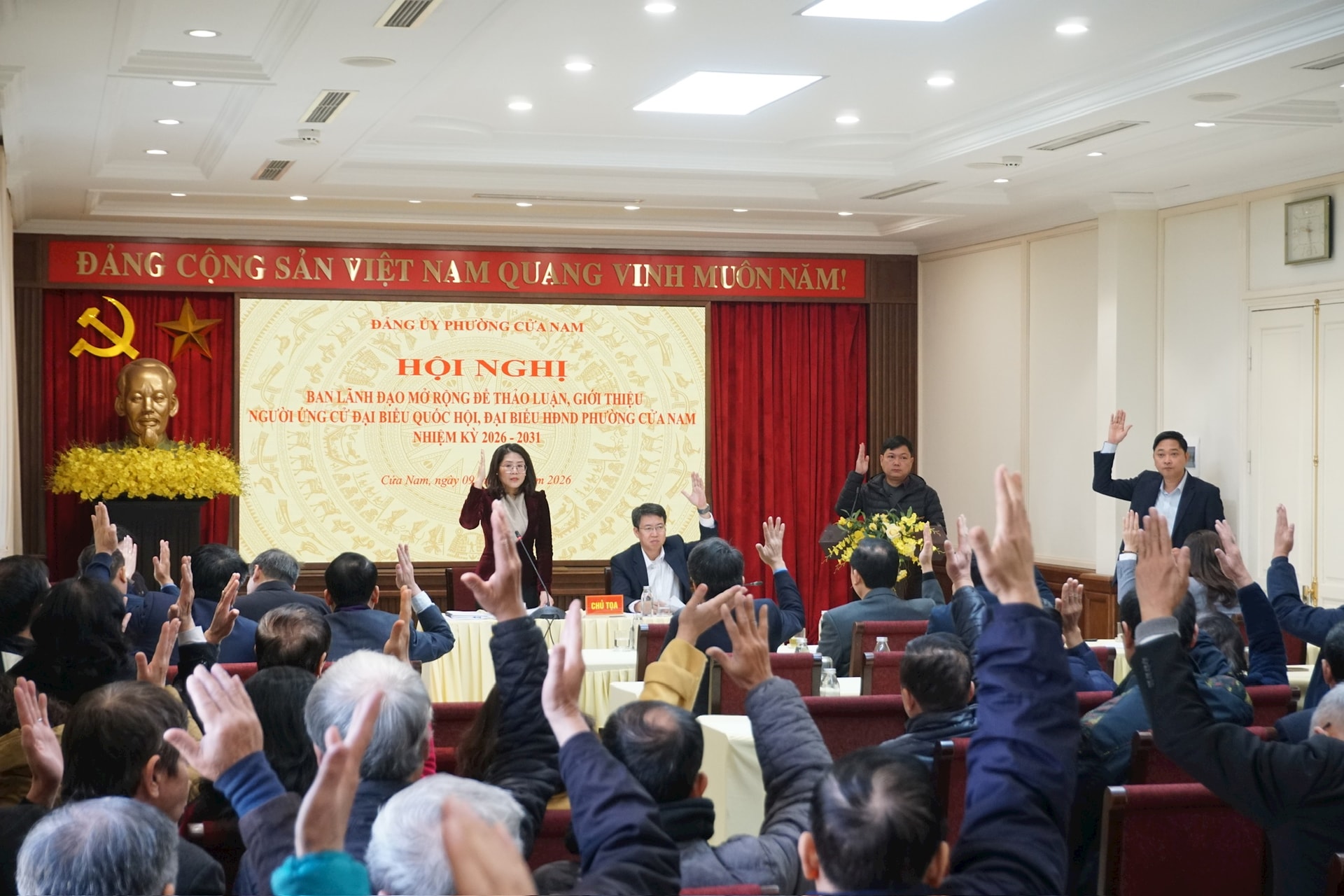 Sau khi thảo luận dân chủ, hội nghị đã tiến hành biểu quyết bằng hình thức giơ tay đối với từng nhân sự. Kết quả, 100% đại biểu dự hội nghị nhất trí giới thiệu 5 người ứng cử đại biểu HĐND phường Cửa Nam nhiệm kỳ 2026-2031.