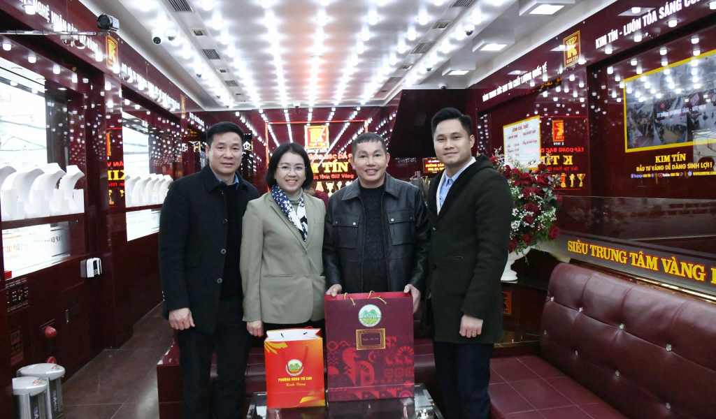 Lãnh đạo phường Nùng Trí Cao tặng quà Tập đoàn Vàng bạc Đá quý Kim Tín.