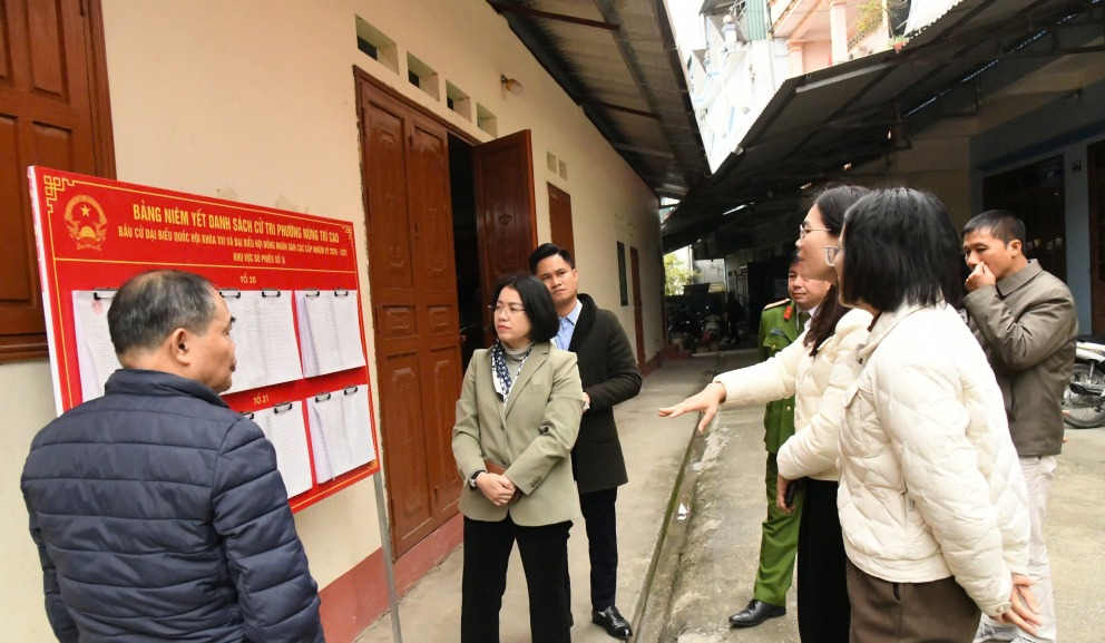 Đoàn kiểm tra tại các địa điểm: Khu vực bỏ phiếu số 05 (Nhà văn hóa tổ dân phố 15 - Nhà văn hóa tổ dân phố 6, Ngọc Xuân cũ); khu vực bỏ phiếu số 07 (Trường THCS Ngọc Xuân); khu vực bỏ phiếu số 08 (Nhà văn hóa tổ dân phố 20 - Nhà văn hóa tổ dân phố 27 Sông Bằng cũ); khu vực bỏ phiếu số 06 (Trường Mầm non 19 - 5).