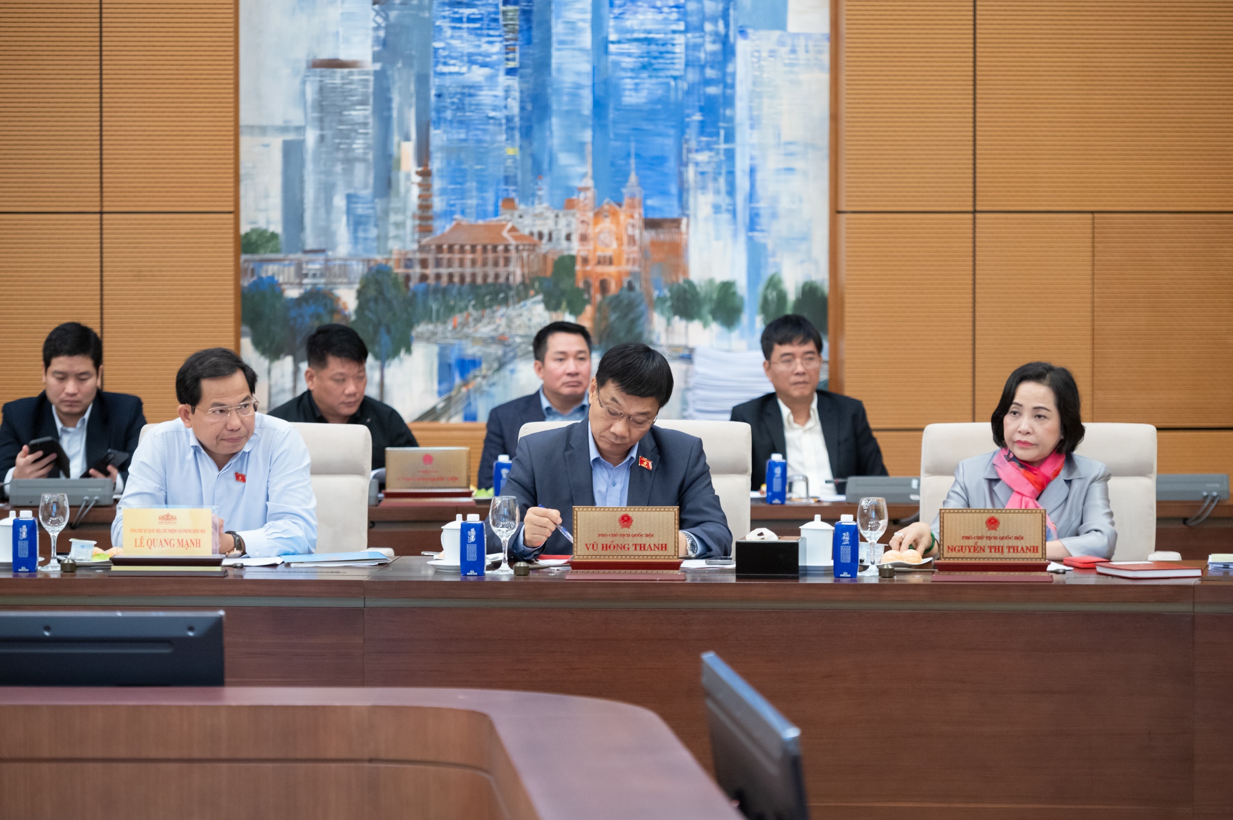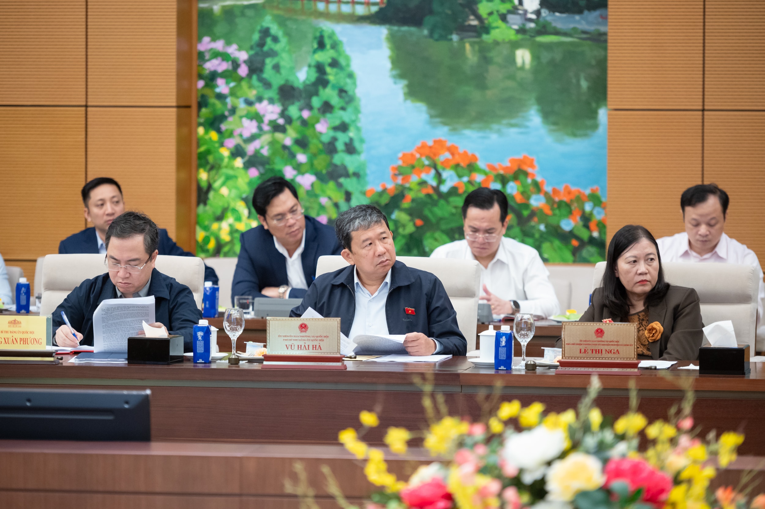 Phó Chủ tịch Quốc hội Nguyễn Thị Thanh; Phó Chủ tịch Quốc hội Vũ Hồng Thanh; Tổng Thư ký Quốc hội, Chủ nhiệm Văn phòng Quốc hội Lê Quang Mạnh và các đại biểu tham dự hội nghị. Ảnh: Phạm Thắng