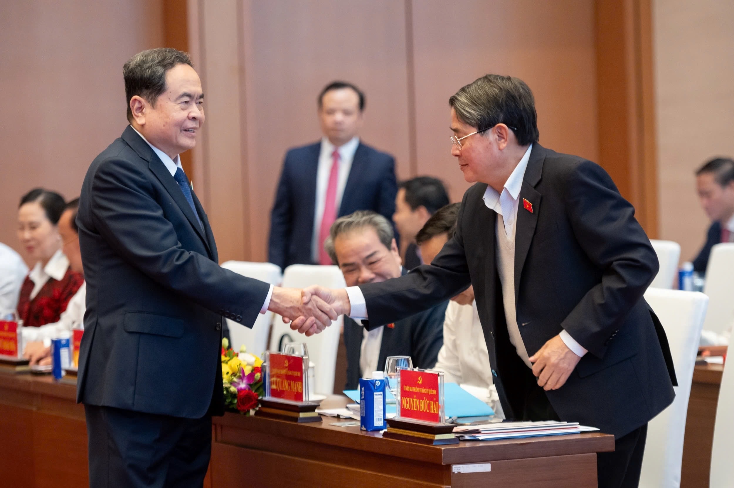 Chủ tịch Quốc hội Trần Thanh Mẫn với Phó Chủ tịch Quốc hội Nguyễn Đức Hải. Ảnh: Phạm Thắng